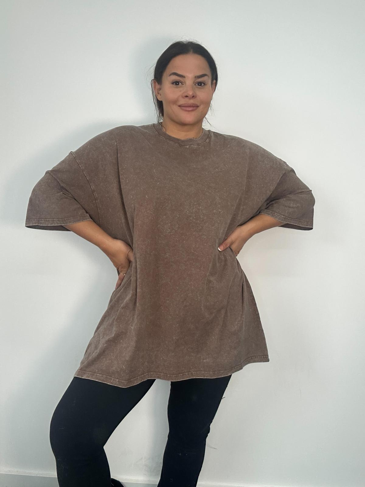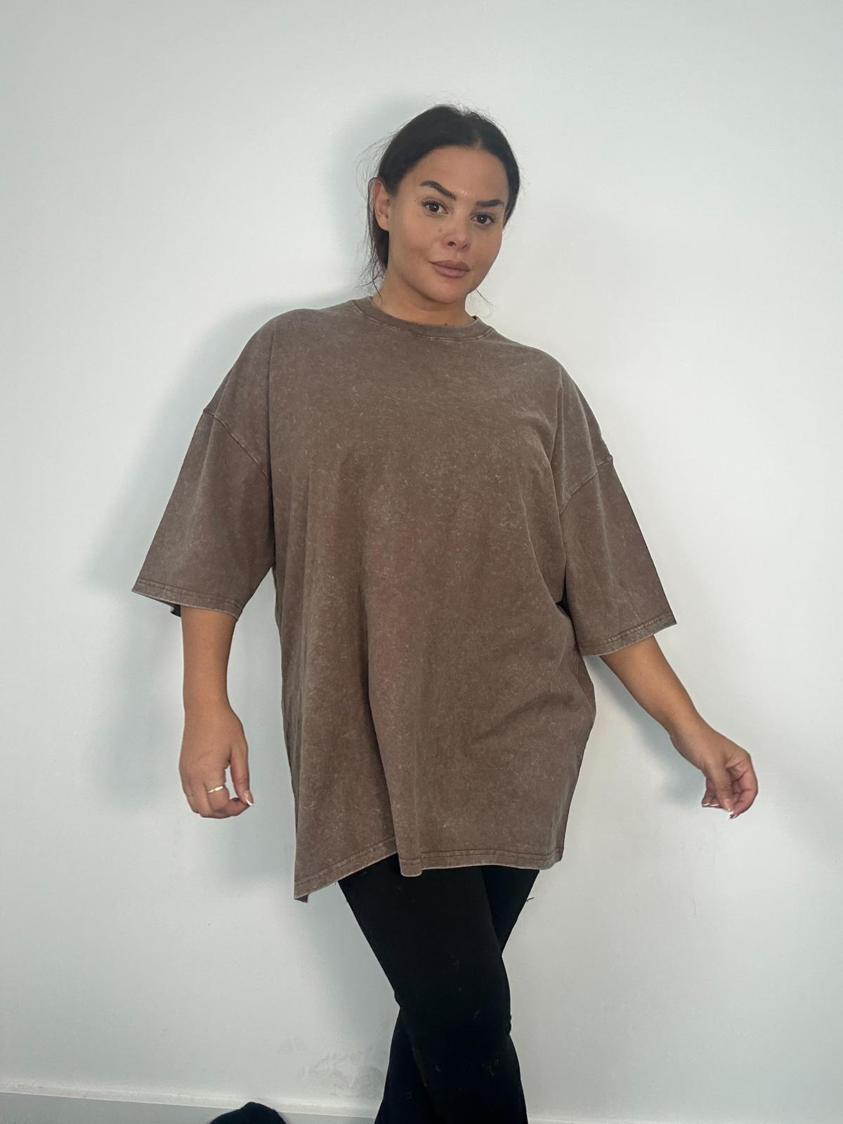 Plus Size Mocha Oversized Acid Wash T-Shirt x 6