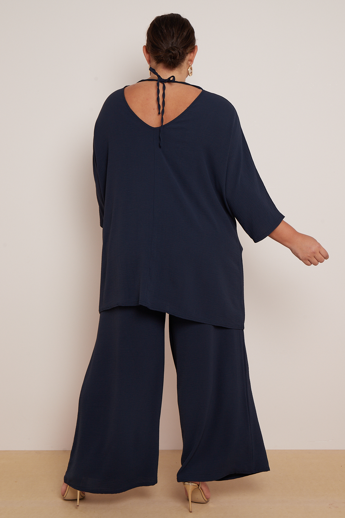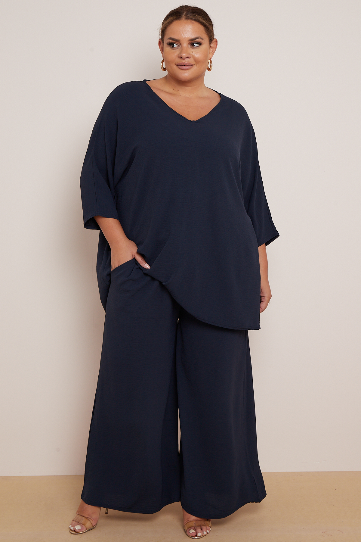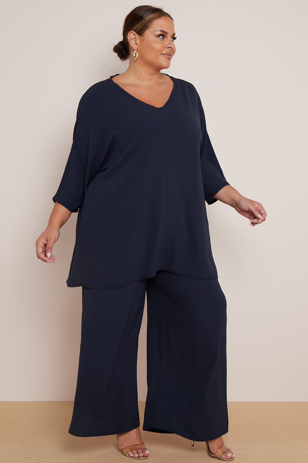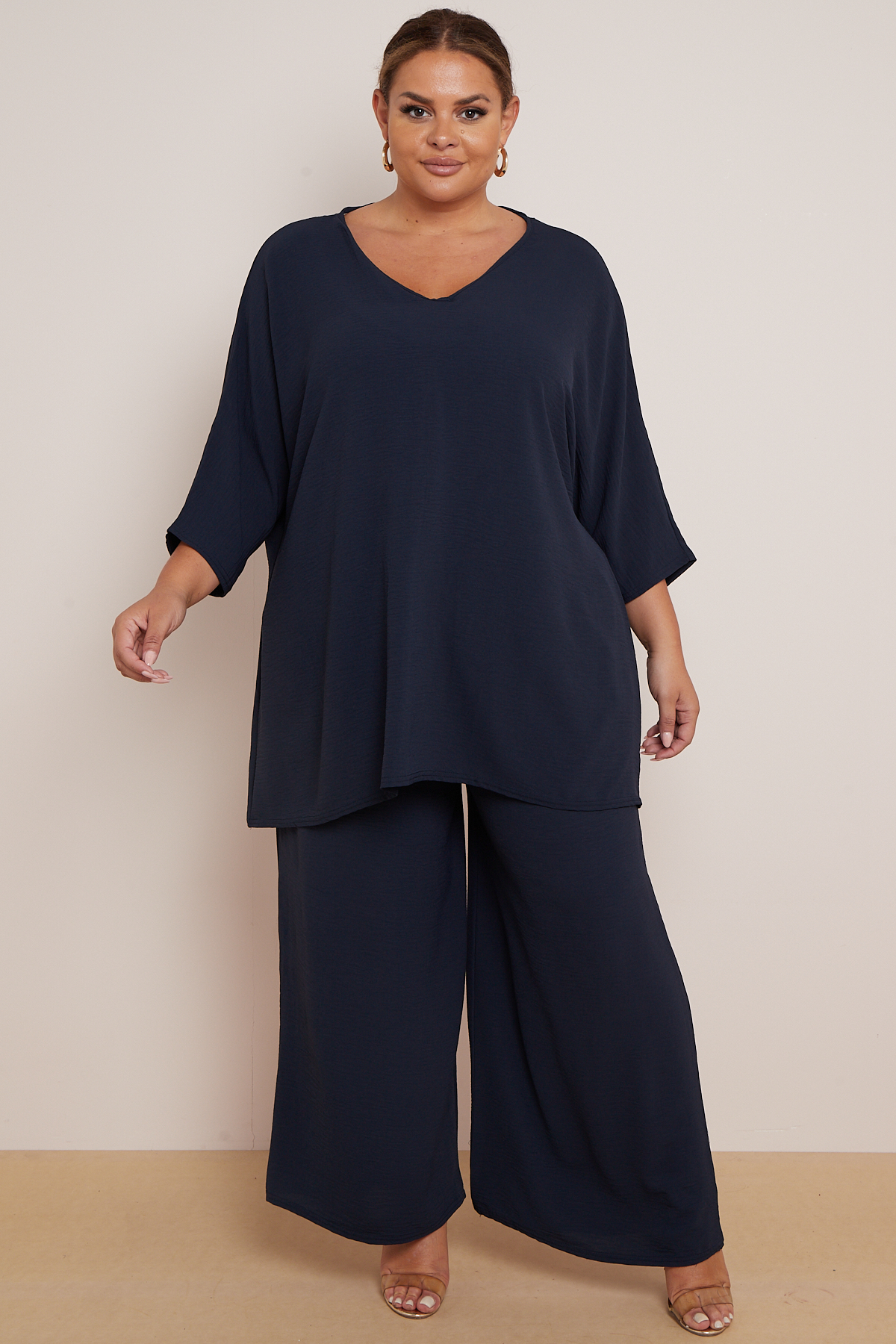 Plus Size Navy 2 Piece Co Ord Set With Mid Length Top & Wide Leg Trousers x 5