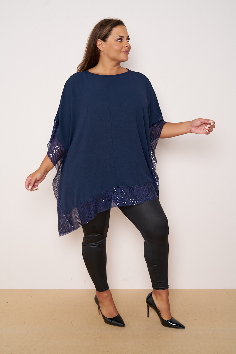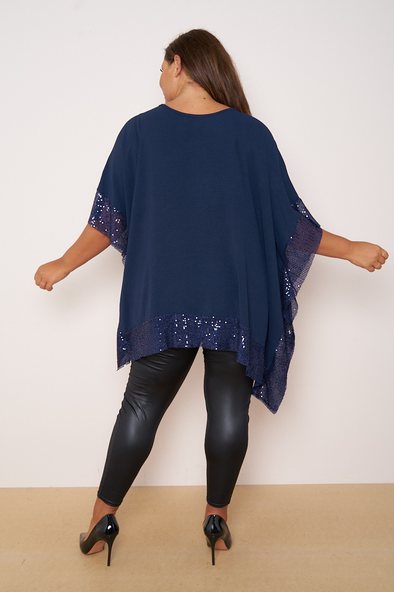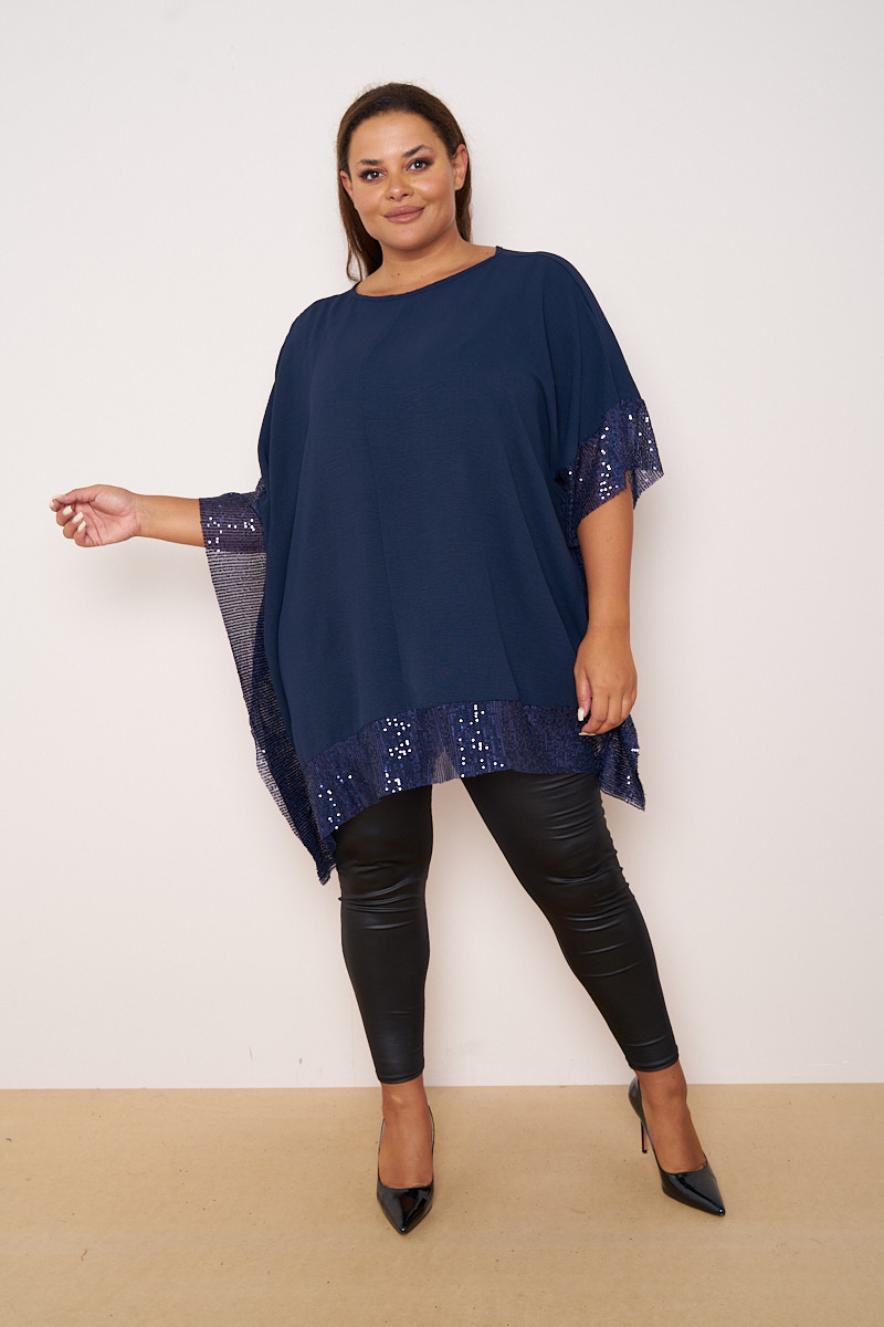 Plus Size Navy Sequin Detail Short Sleeve Top x 5