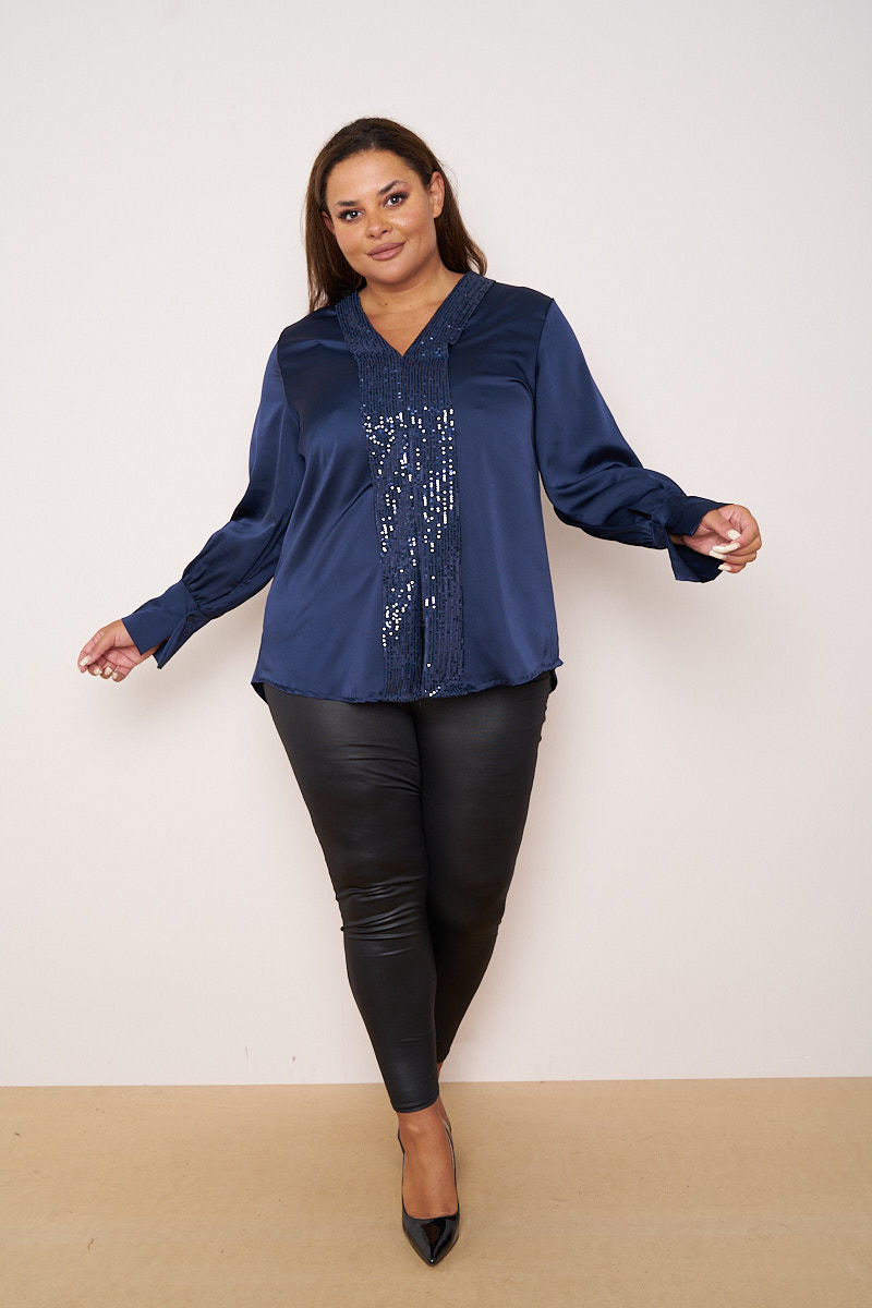 Plus Size Navy Sequin Embellished Long Sleeve Blouse x 5