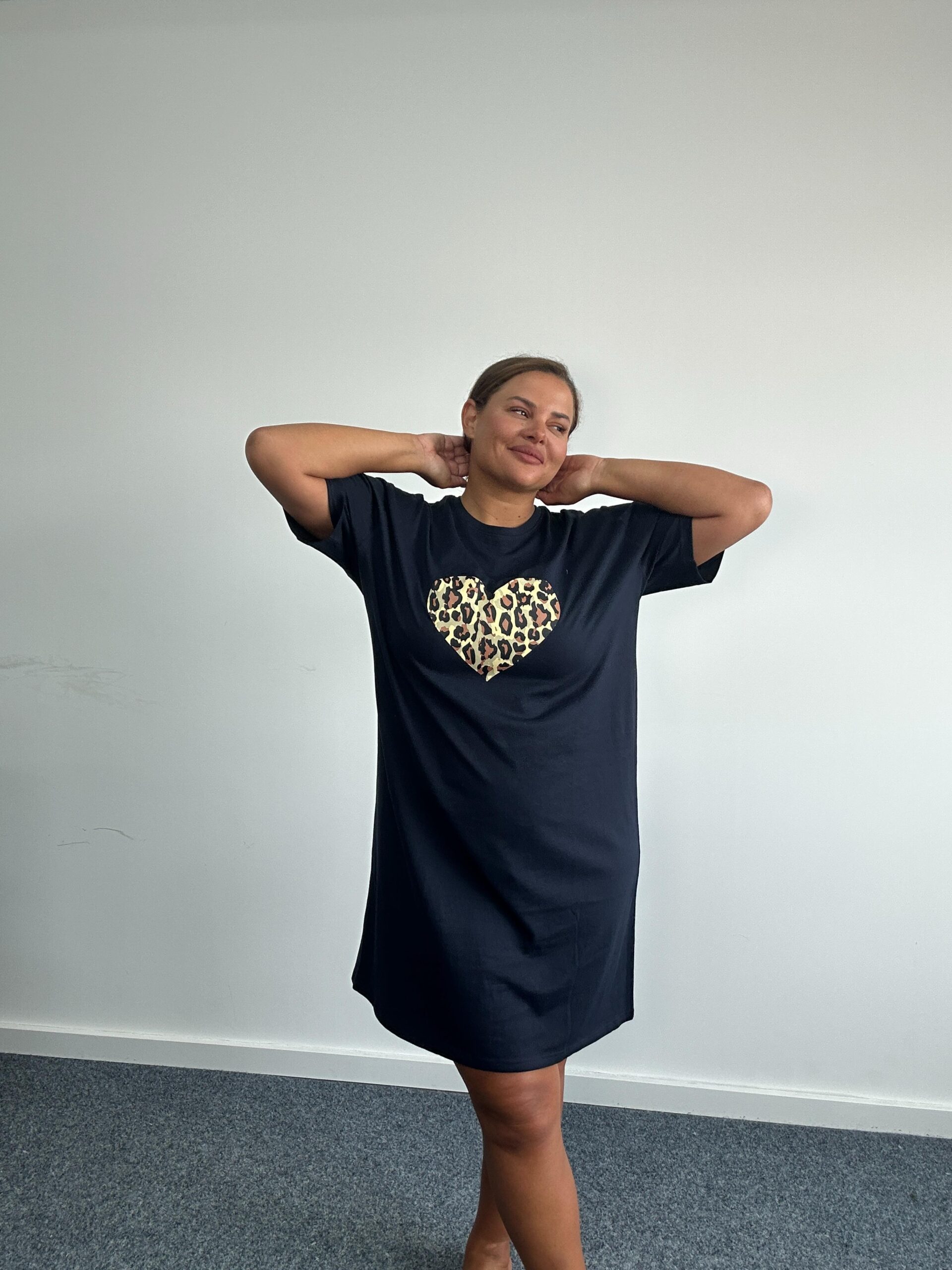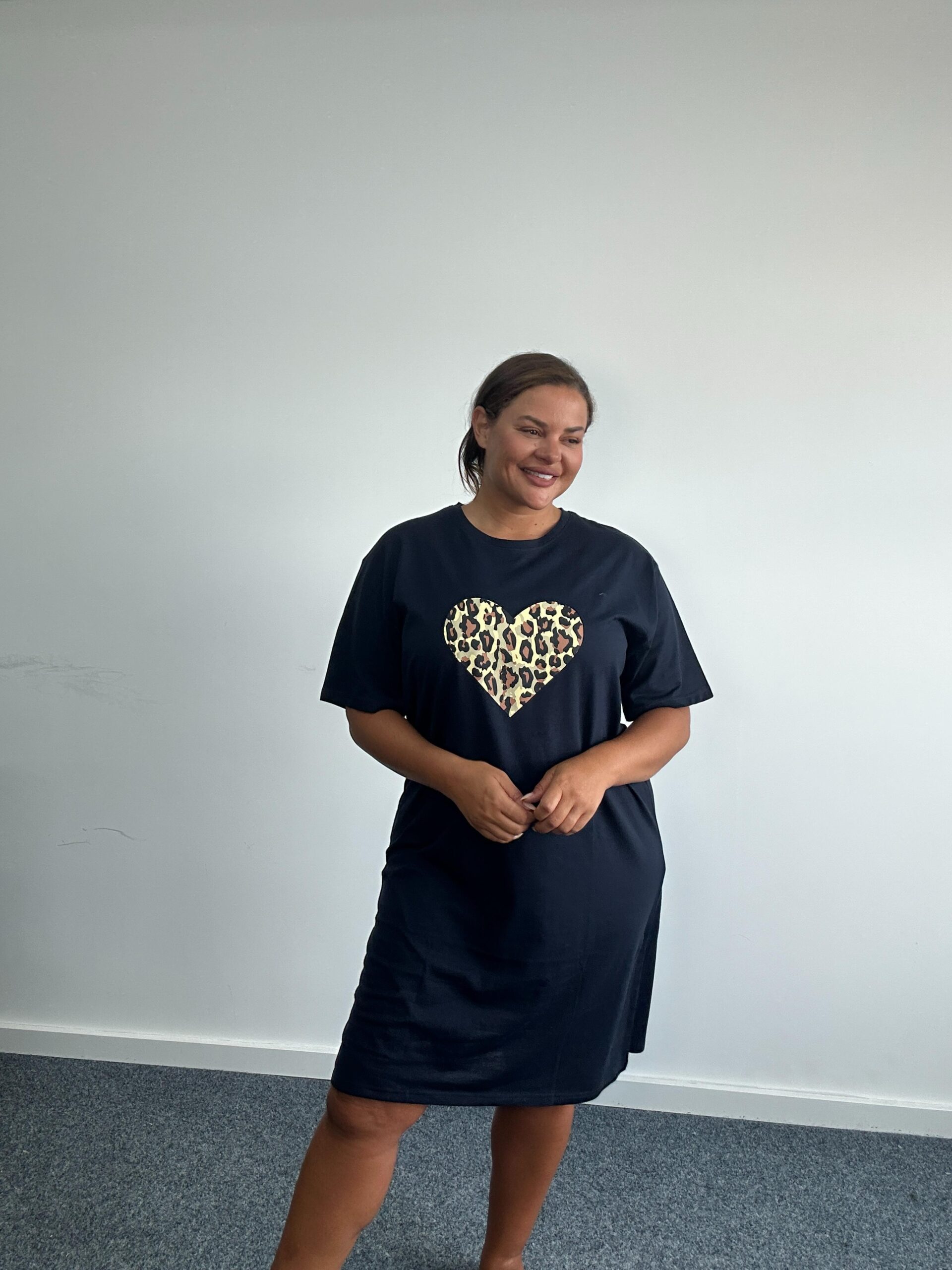 Bring cosy-chic style to your boutique sleepwear collection with this Plus Size Leopard Heart Cotton Sleep Dress. Made from a soft, breathable cotton-blend fabric, this nightdress combines comfort with a touch of trend featuring a leopard-print heart motif on the front for a fun, fashionable twist. The relaxed t-shirt silhouette and short sleeves offer easy movement and all-night comfort, making it perfect for lounging or sleeping. A must-have for plus-size customers who want stylish, comfortable sleepwear that feels as good as it looks.