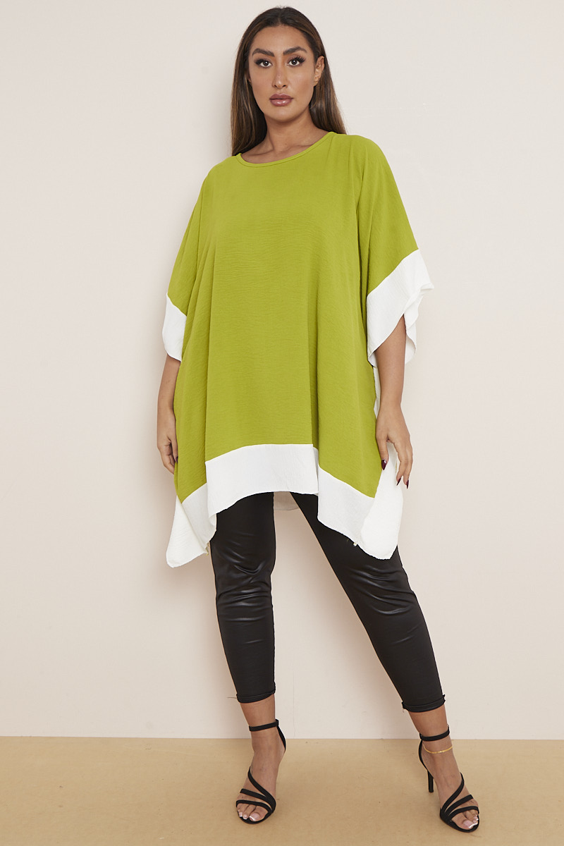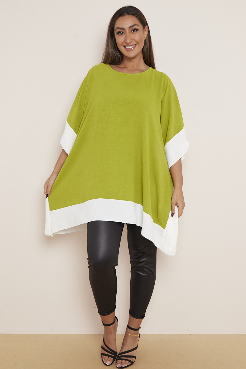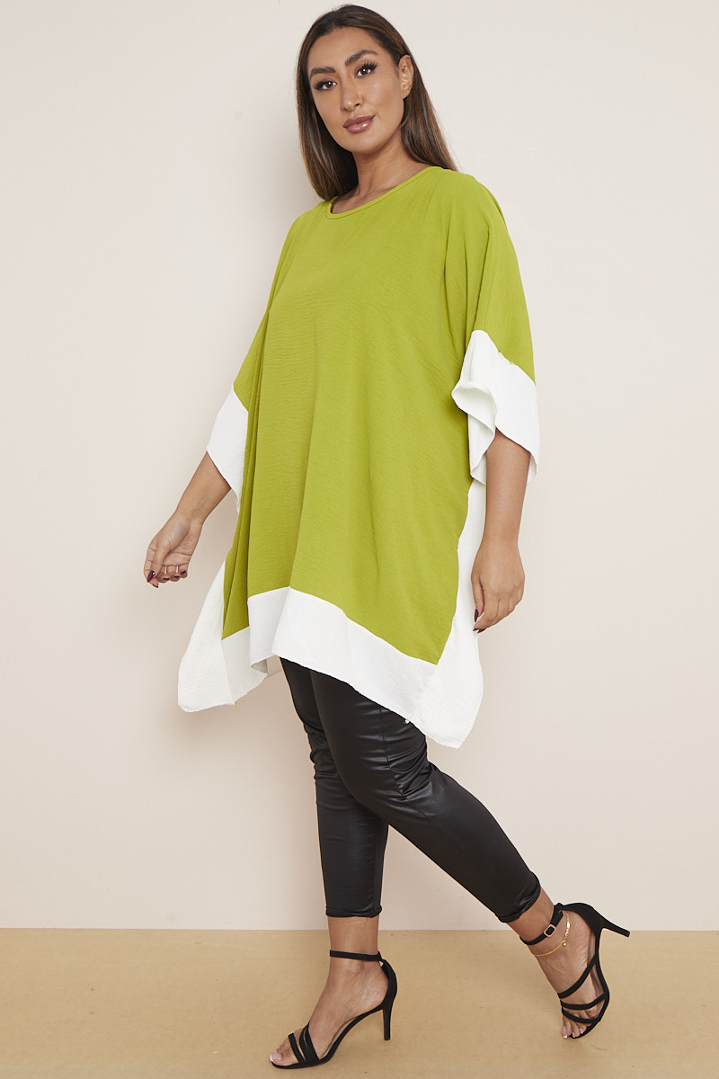 Plus Size Olive Asymmetric Contrast Zebra Print Hem & Sleeve Top x 5