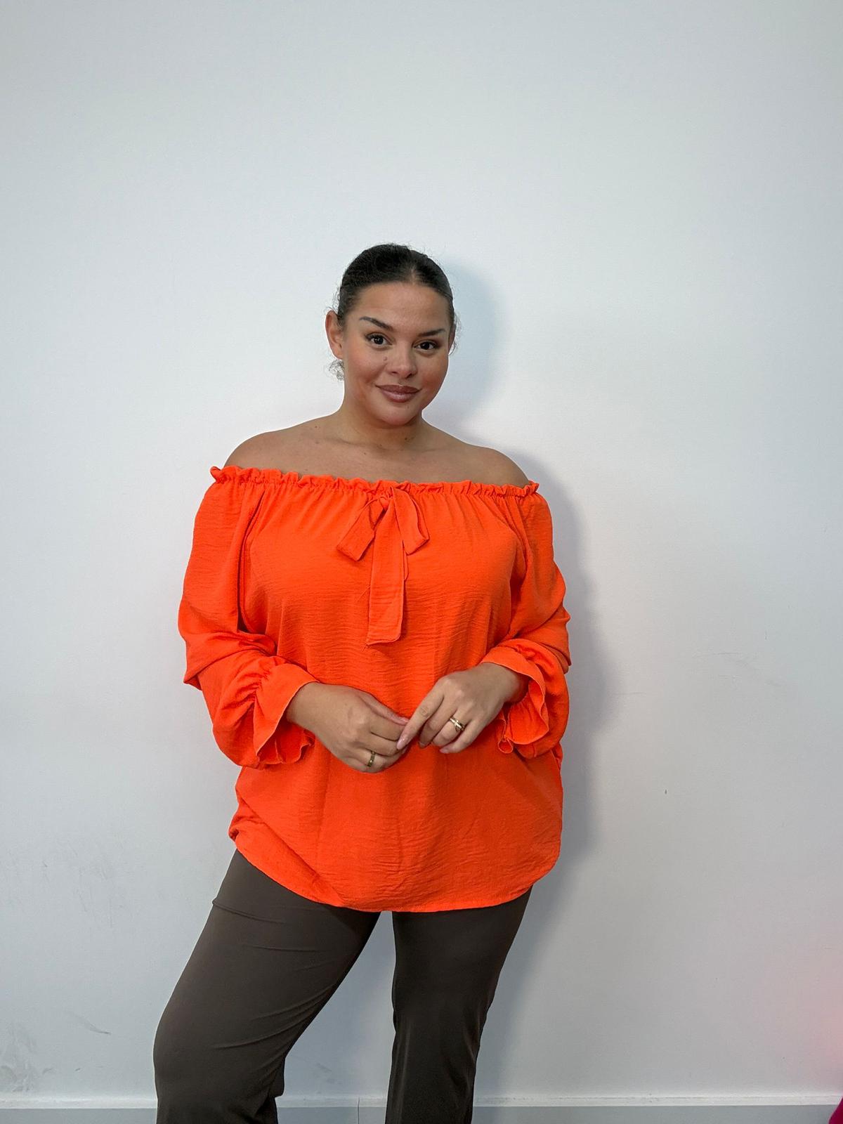 Plus Size Orange Off Shoulder Tie Front Blouse x 2, 3 & 5 Pack Options