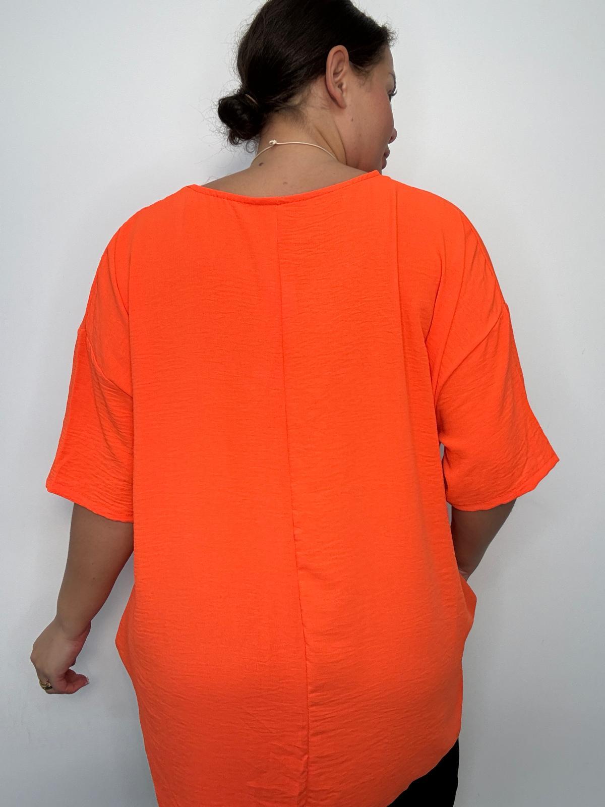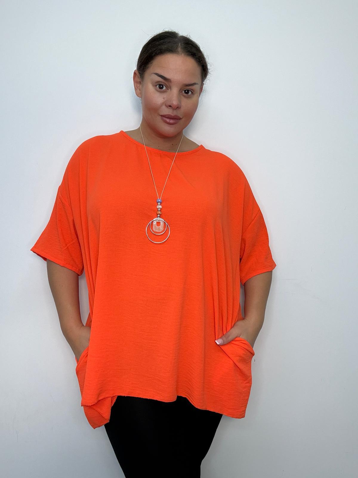 Plus Size Orange Oversized Soft Touch T-Shirt Top with Pockets x 2, 3 & 5 Pack Options