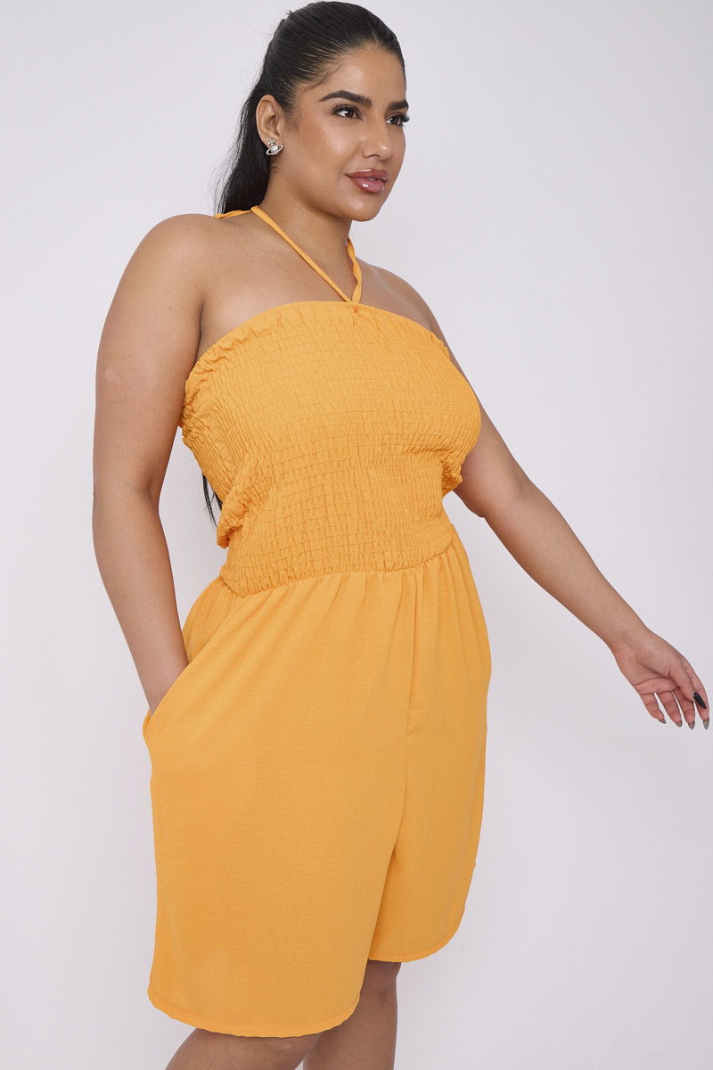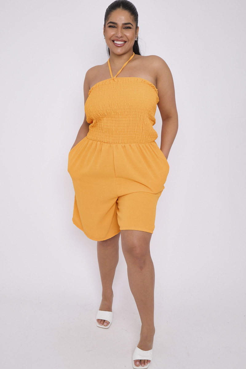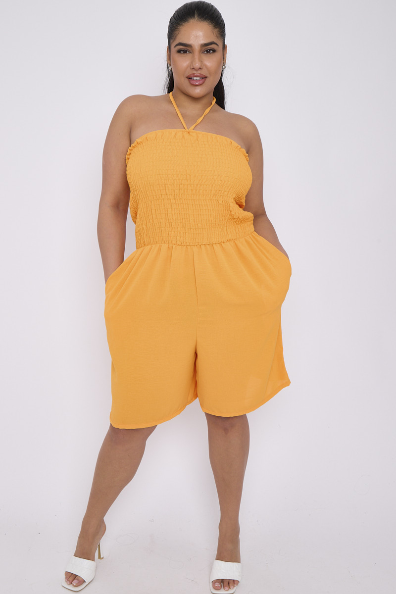 Plus Size Orange Strap Halterneck Shirred Top Playsuit With Pockets x 5