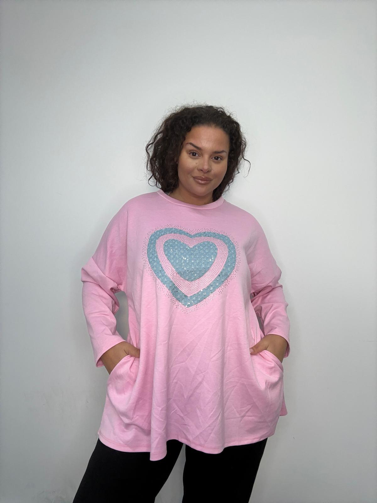Plus Size Pink Heart Sequin Swing Top with Pockets x 2, 3 & 5 Pack Options