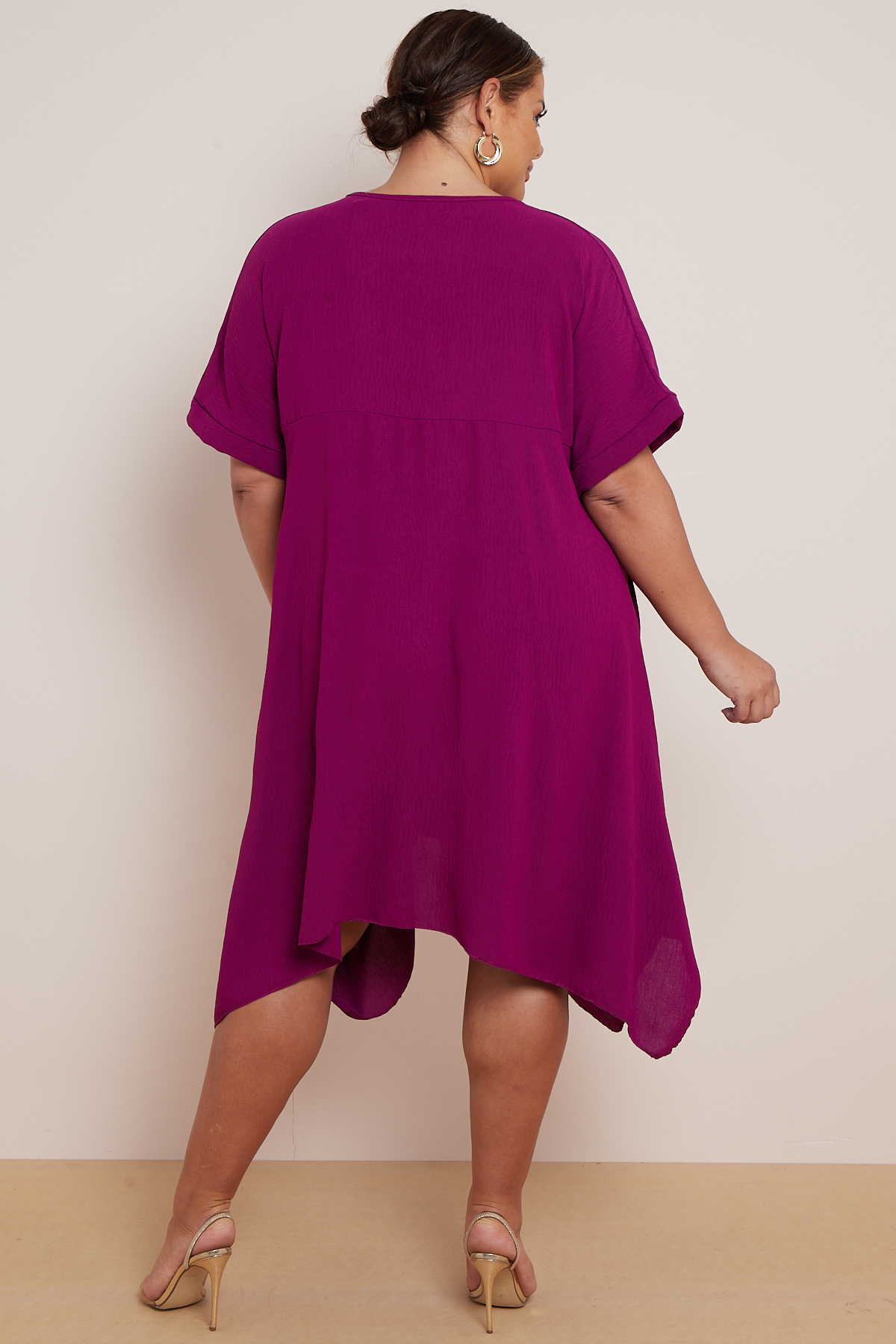 Plus Size Plum V Neck Short Sleeve Asymmetric Hem Dress With Pockets x 5