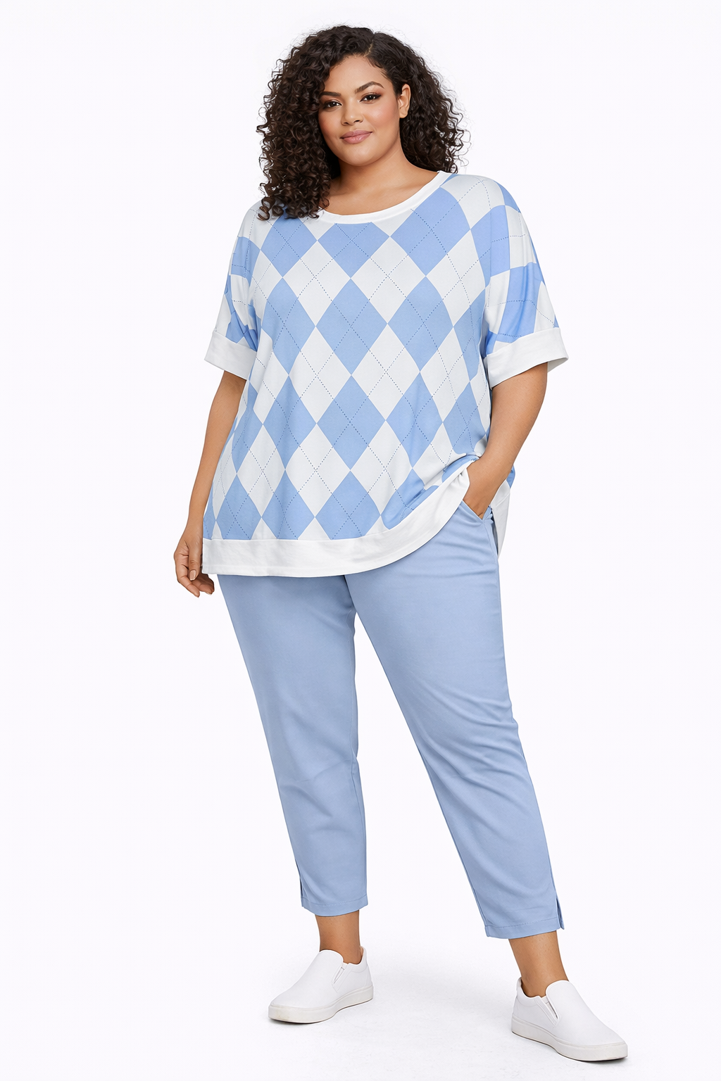 Plus Size Powder Blue Argyle Print Oversized T-Shirt Top x 2, 3 & 5 Pack Options