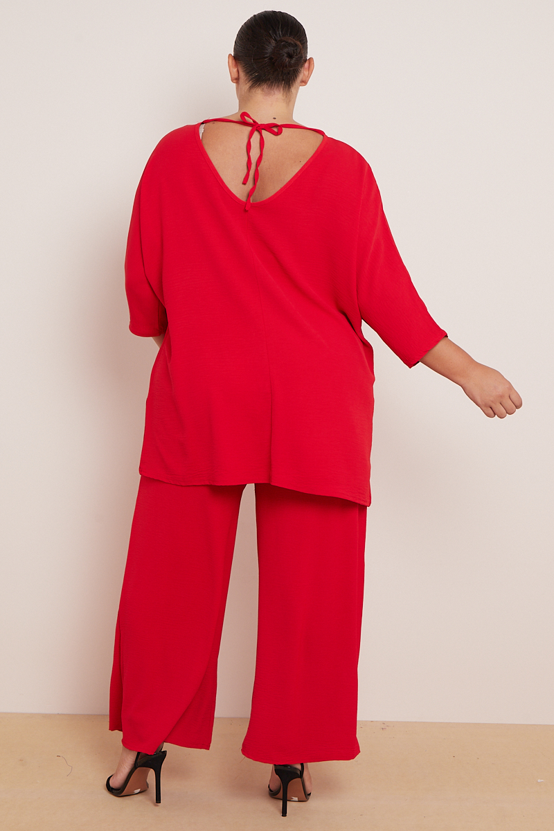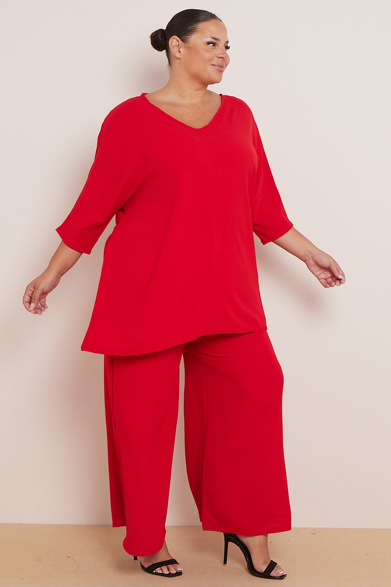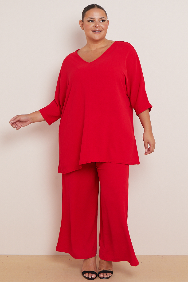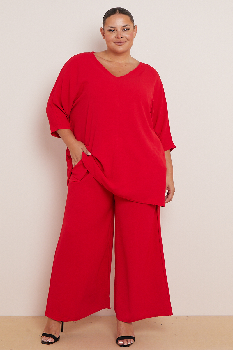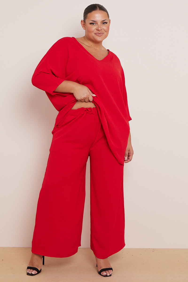 Plus Size Red 2 Piece Co Ord Set With Mid Length Top & Wide Leg Trousers x 5