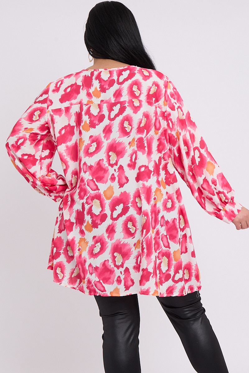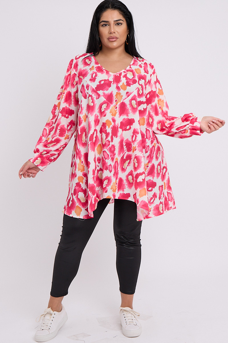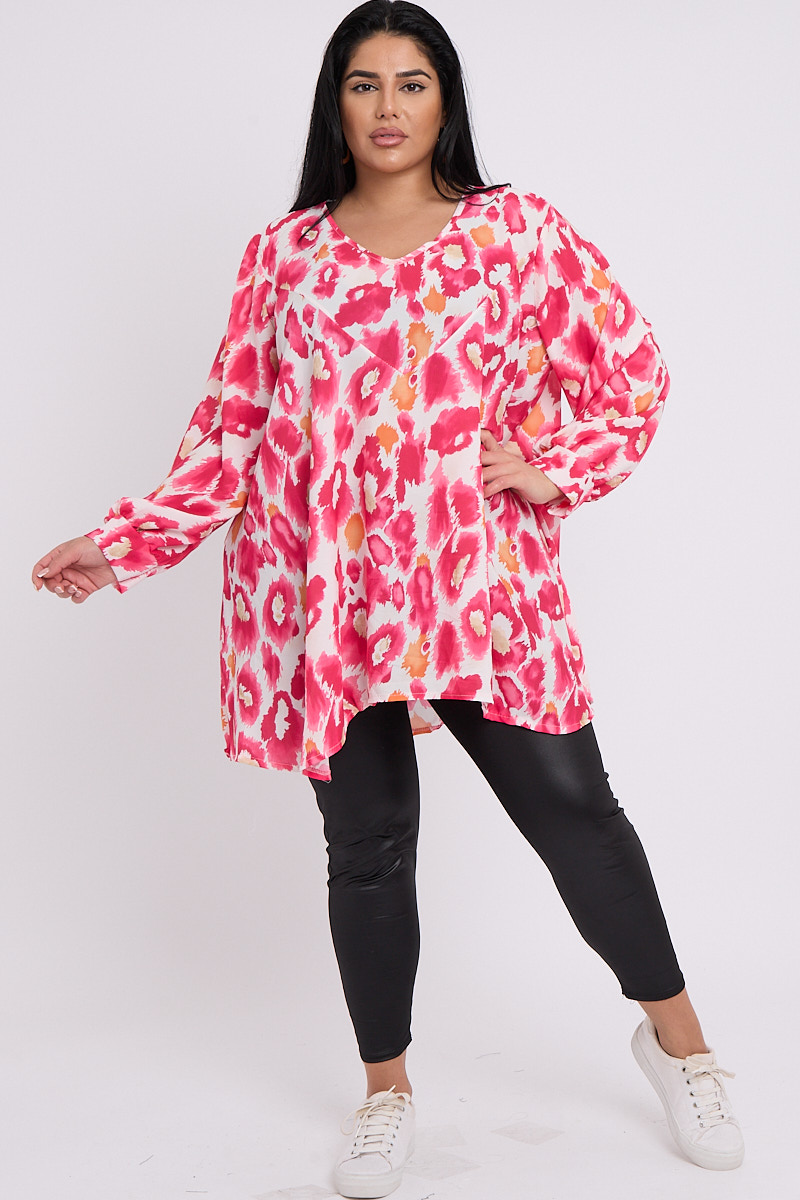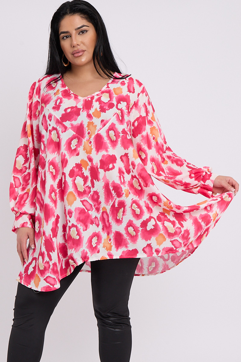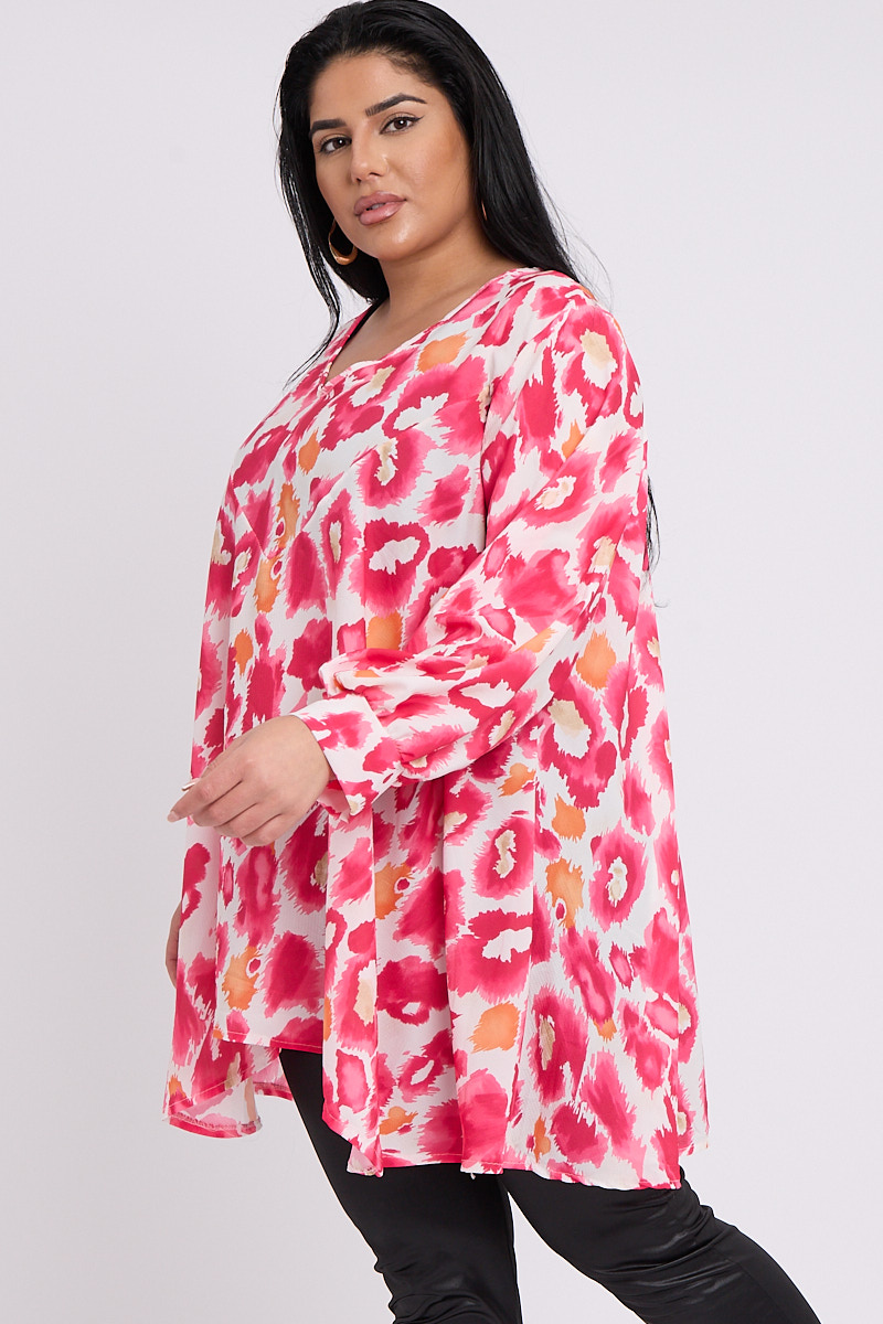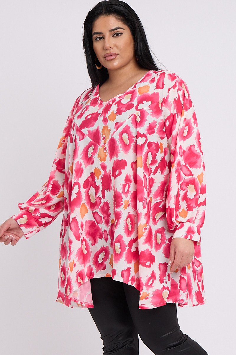 Plus Size Red Printed V Neck Long Sleeve Flare Top x 5