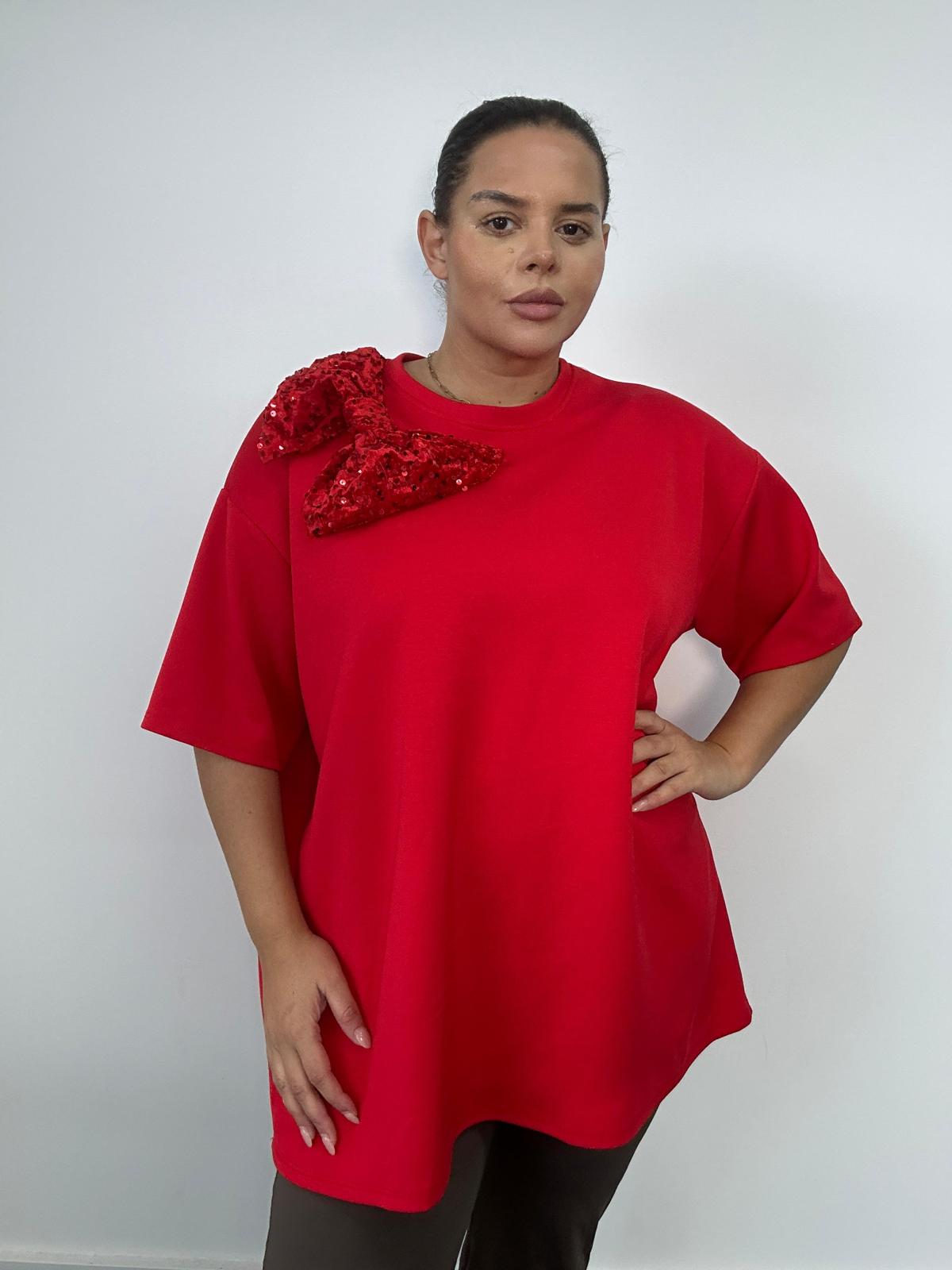 Make a statement this season with our Plus SizeSequin Bow Shoulder Top the perfect blend of festive glam and easy-to-wear comfort. Featuring a bold sequin bow detail on one shoulder, this top adds instant sparkle while maintaining a relaxed, flattering silhouette. Perfect for boutique buyers looking for statement plus-size partywear that’s chic, comfortable, and eye-catching.