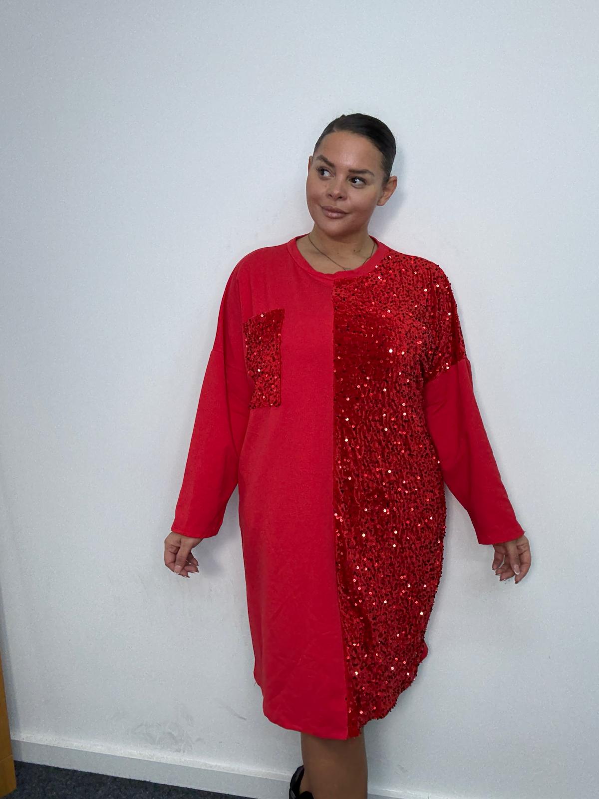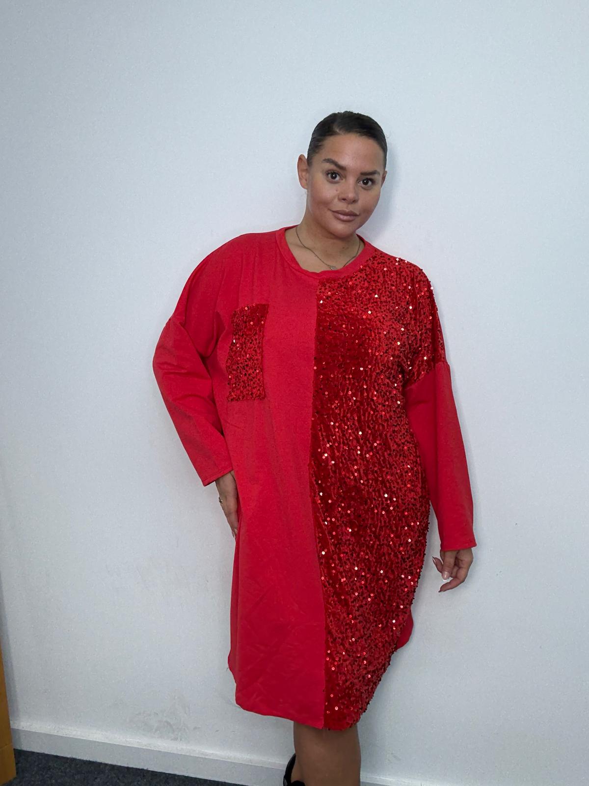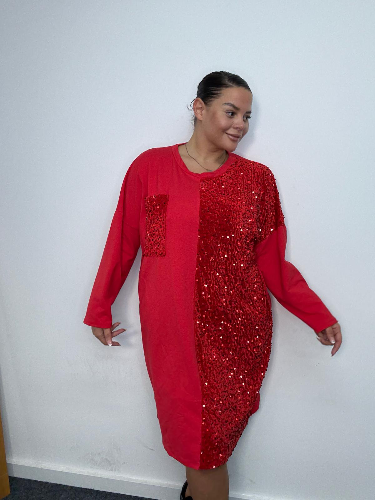 Plus Size Red Sequin Panel Longline Sweatshirt Dress x 2, 3 & 5 Pack Options