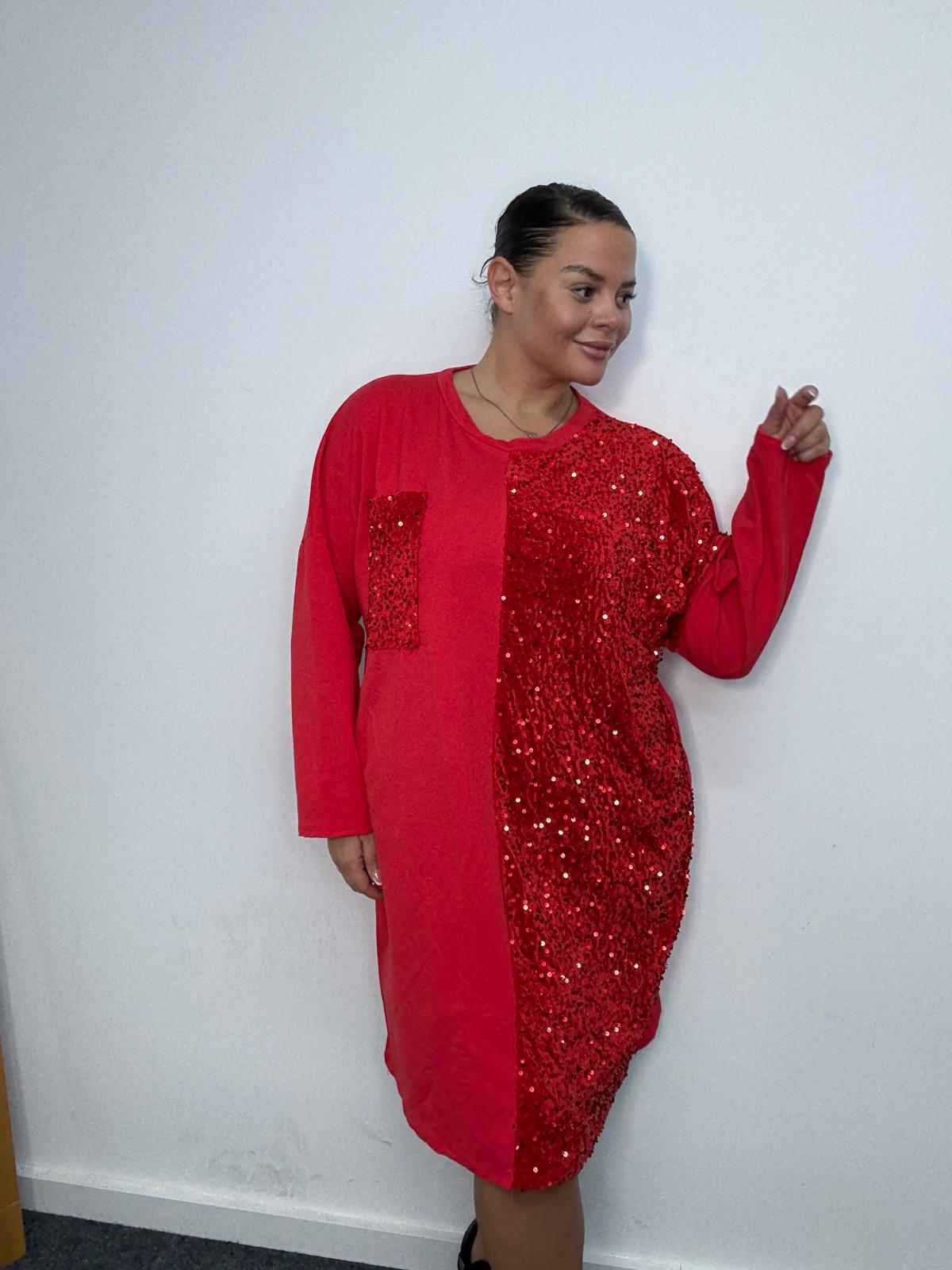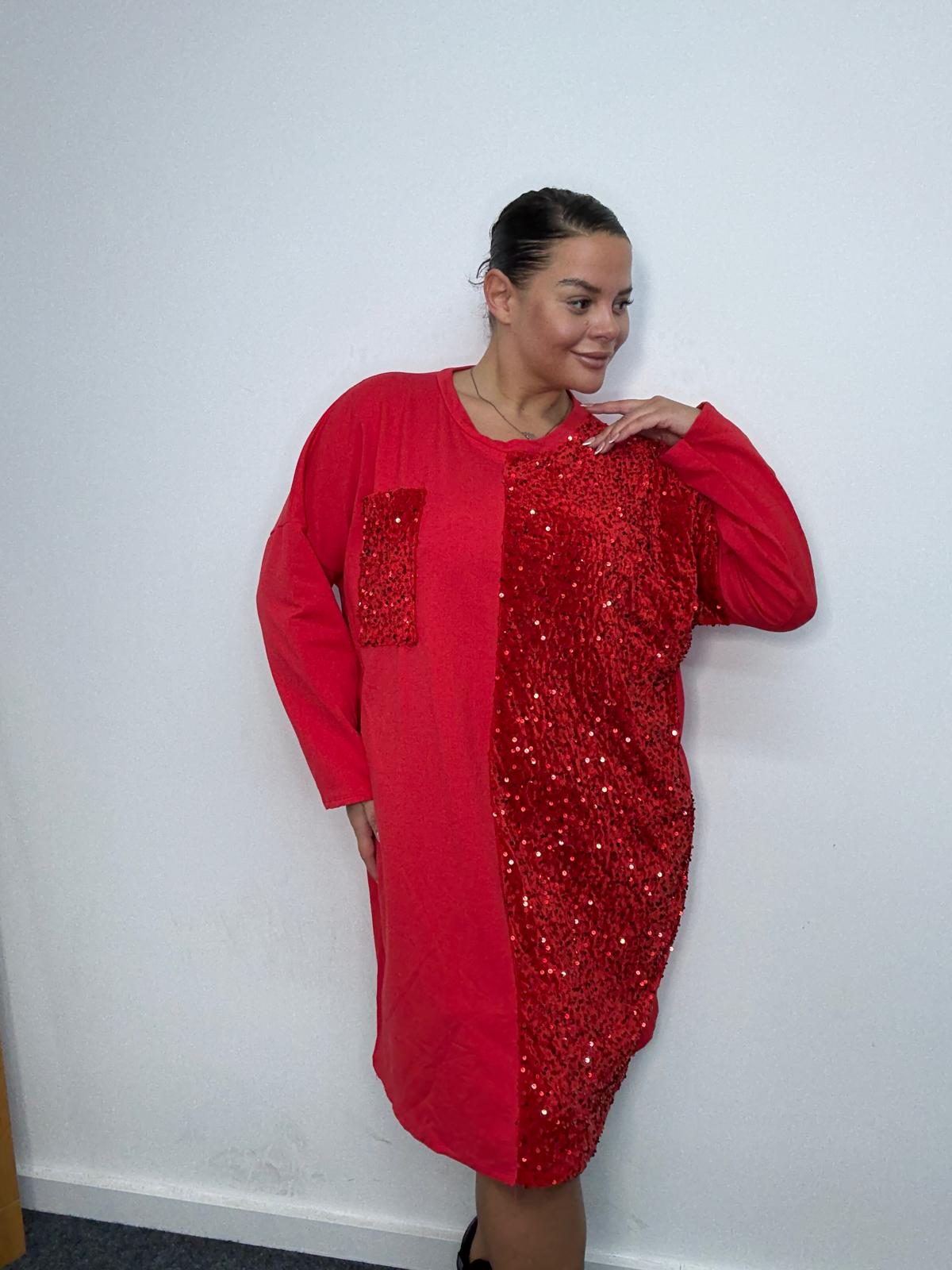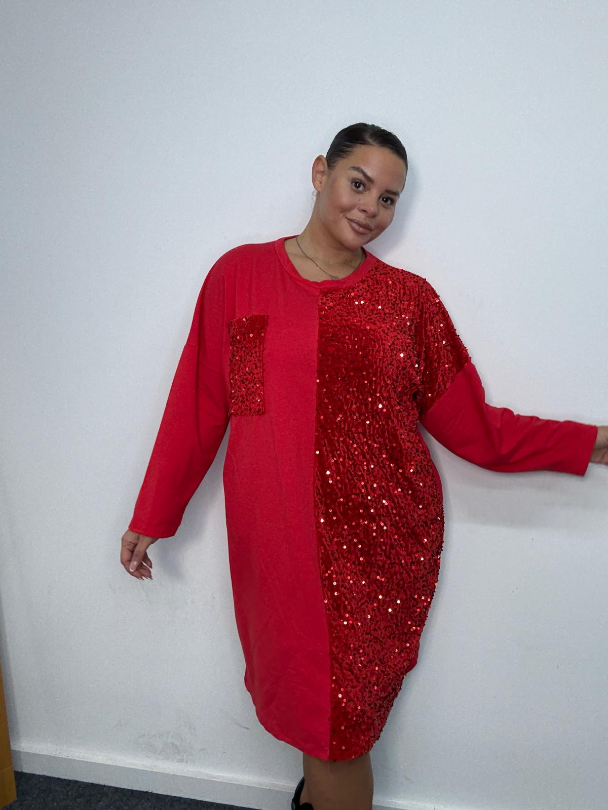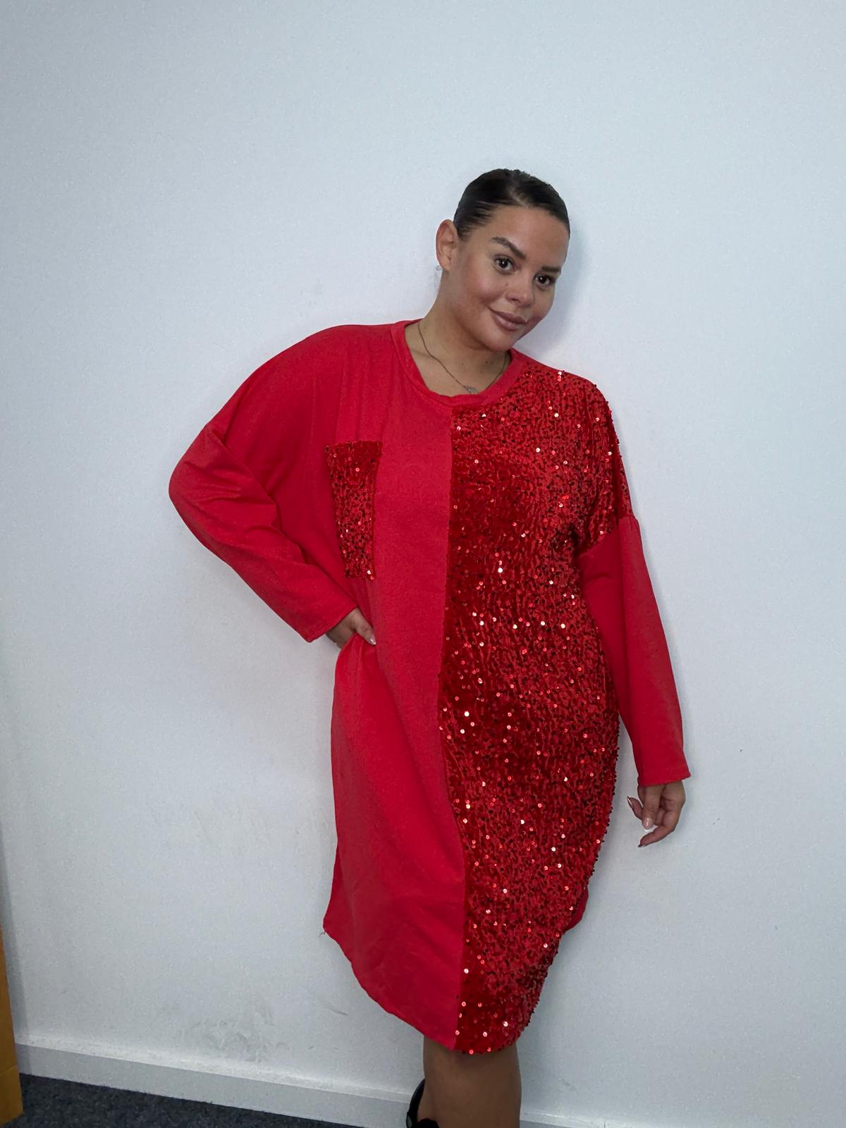 Plus Size Red Sequin Panel Longline Sweatshirt Dress x 2, 3 & 5 Pack Options