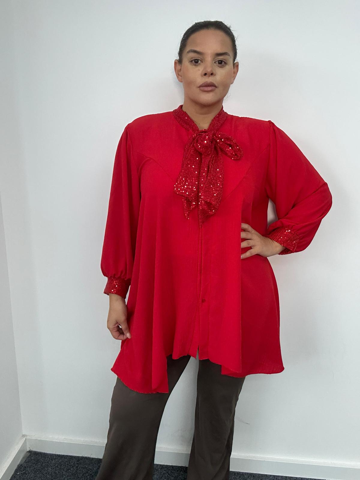 Elevate your boutique’s evening and occasionwear collection with this stunning Plus Size Sequin Pussybow Blouse. Designed to flatter curves while adding a touch of festive sparkle, this blouse features a statement sequin bow tie neckline and matching sequin cuffs for an elegant, coordinated look. Perfect for party season, special events, or chic day-to-night styling.