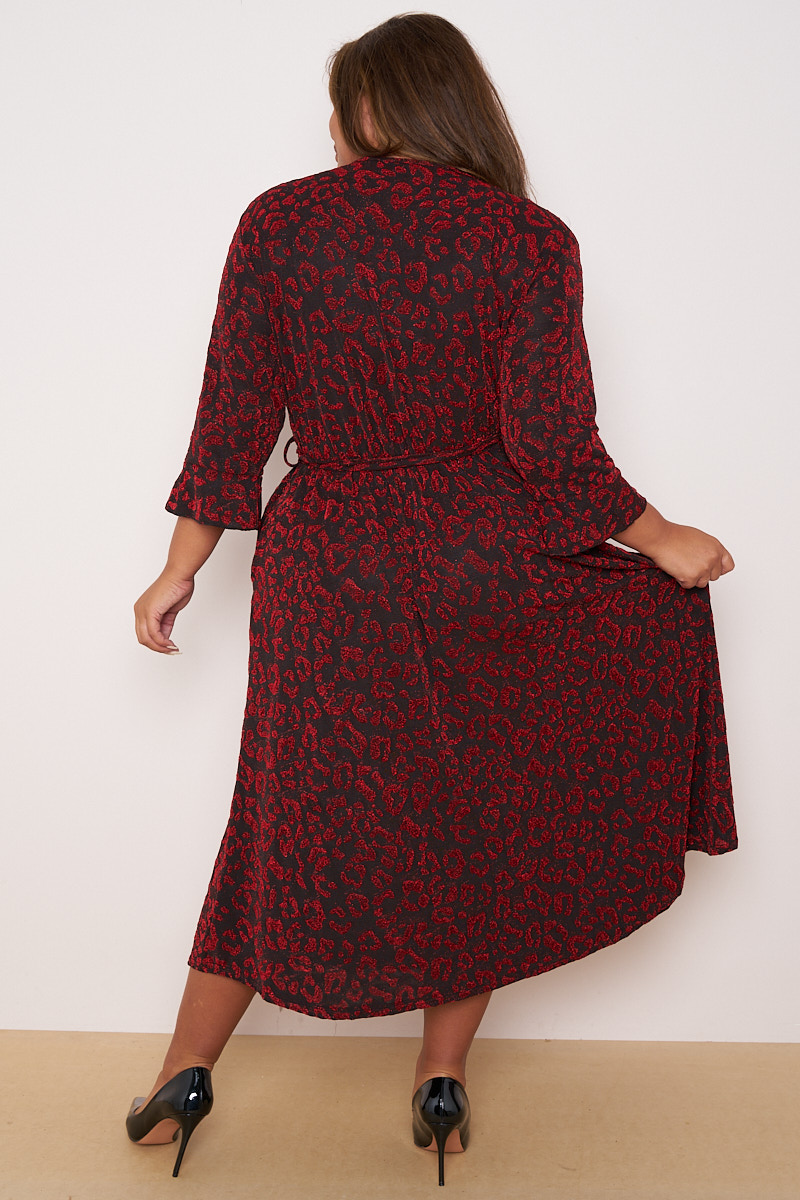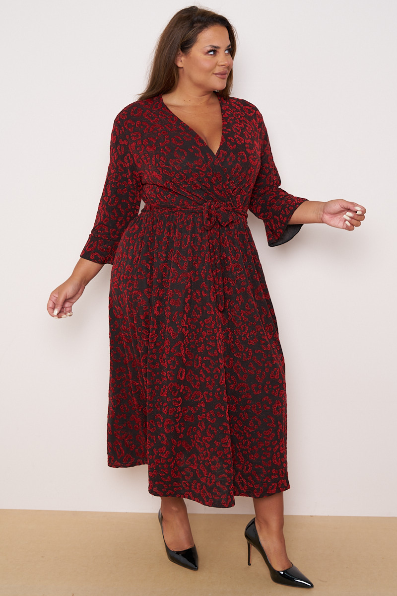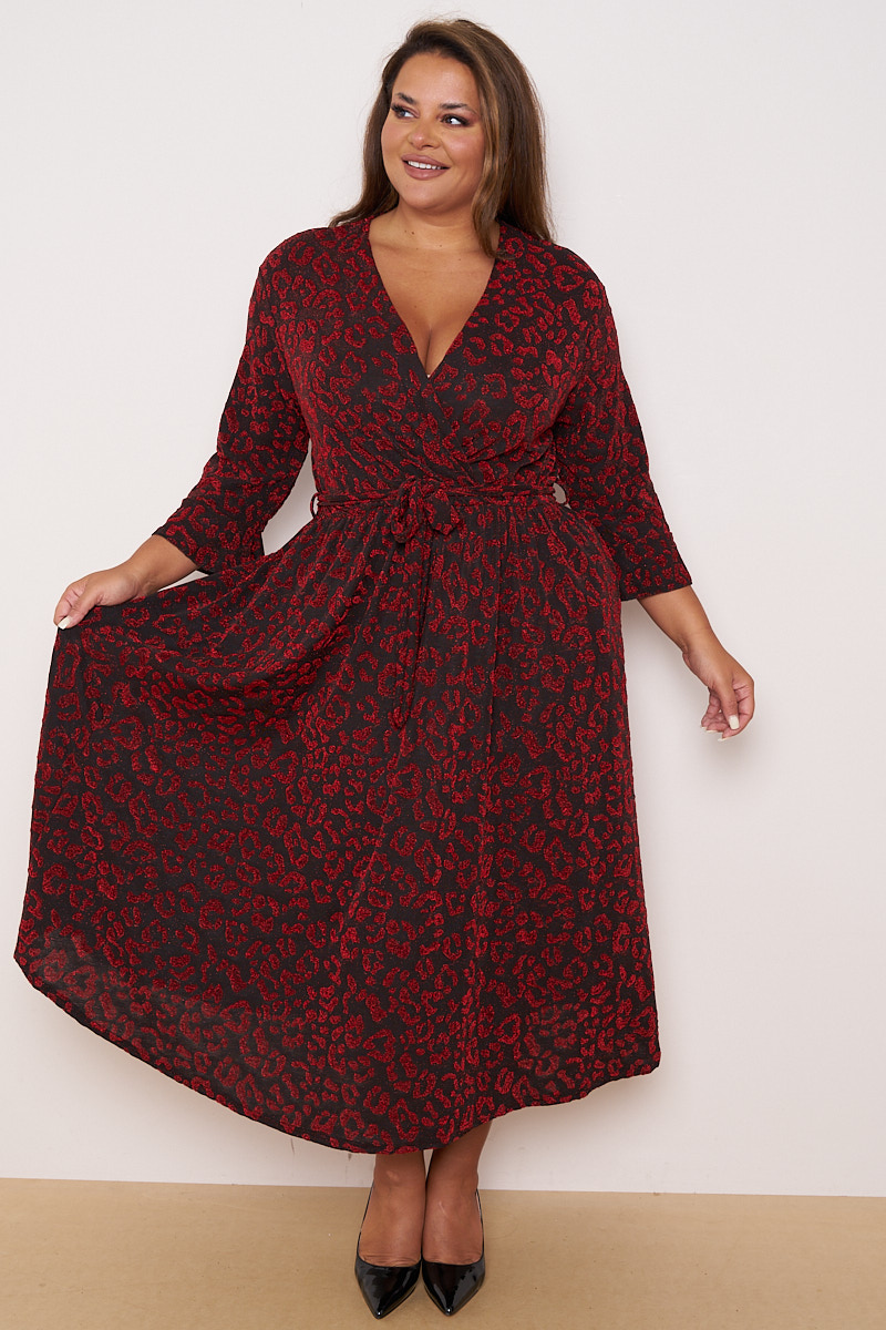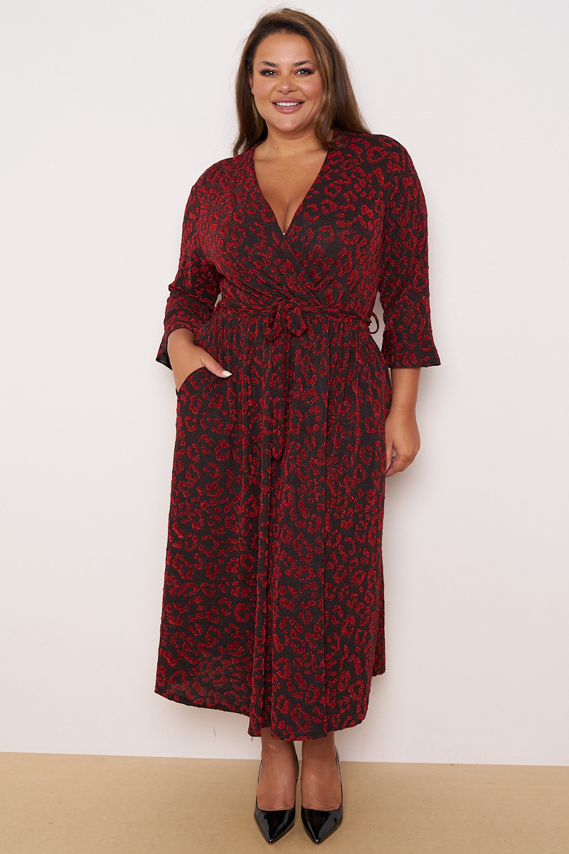 Plus Size Red Sparkle Printed Wrap Dress With Pockets x 5
