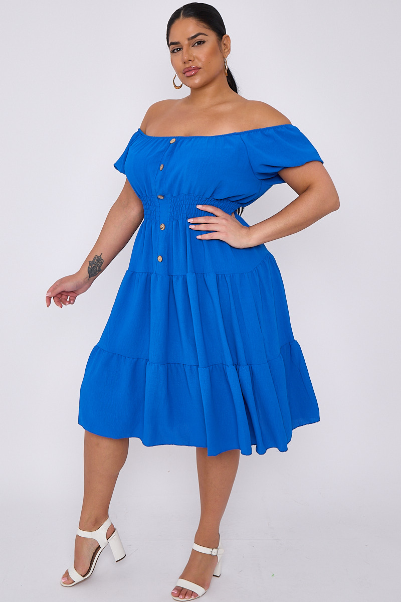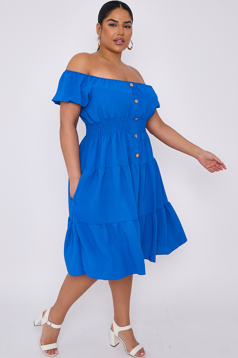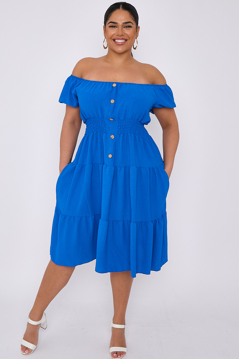 Plus Size Royal Blue Bardot Button Detail Dress With Pockets x 5