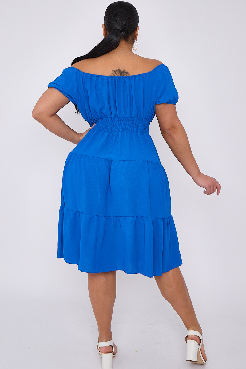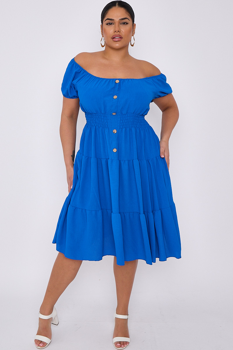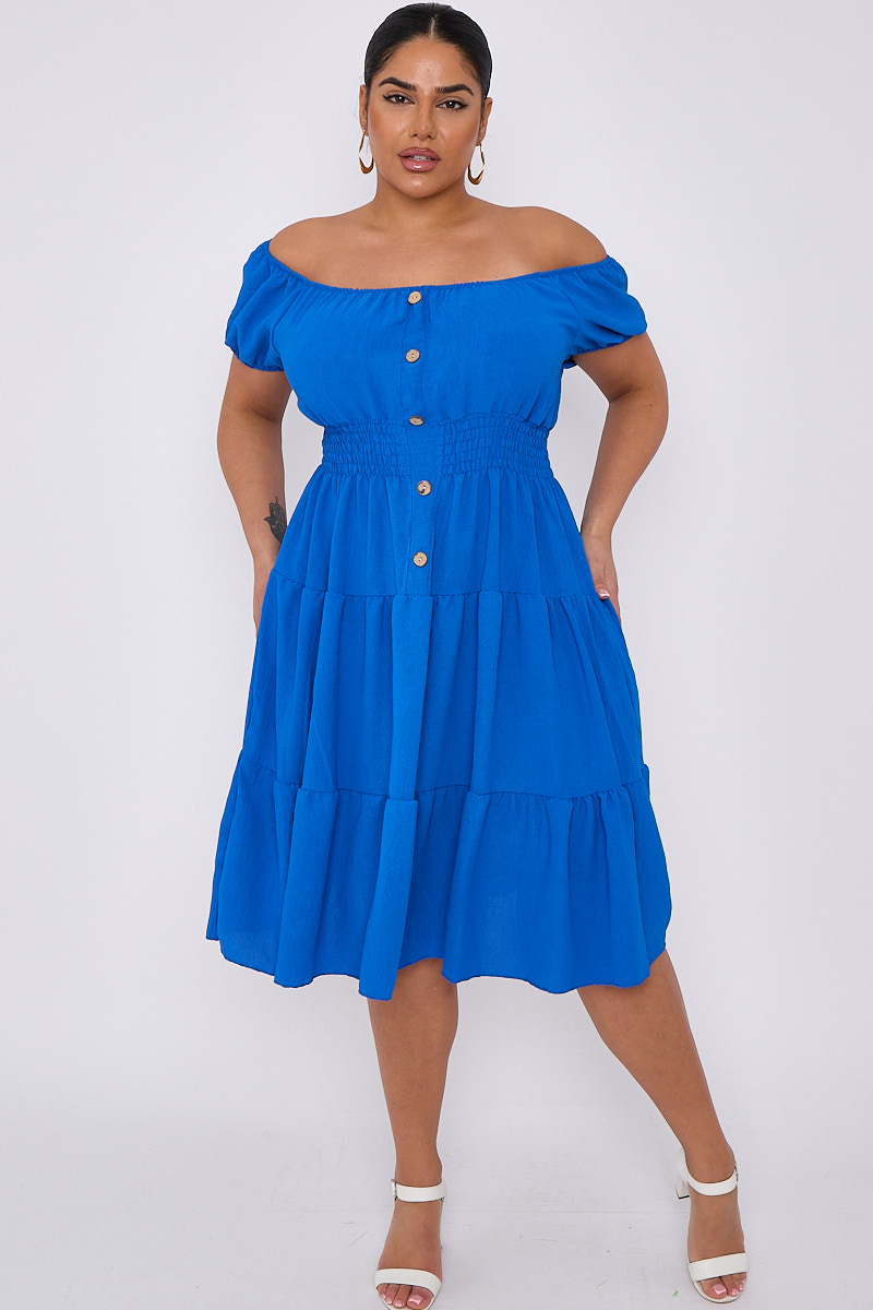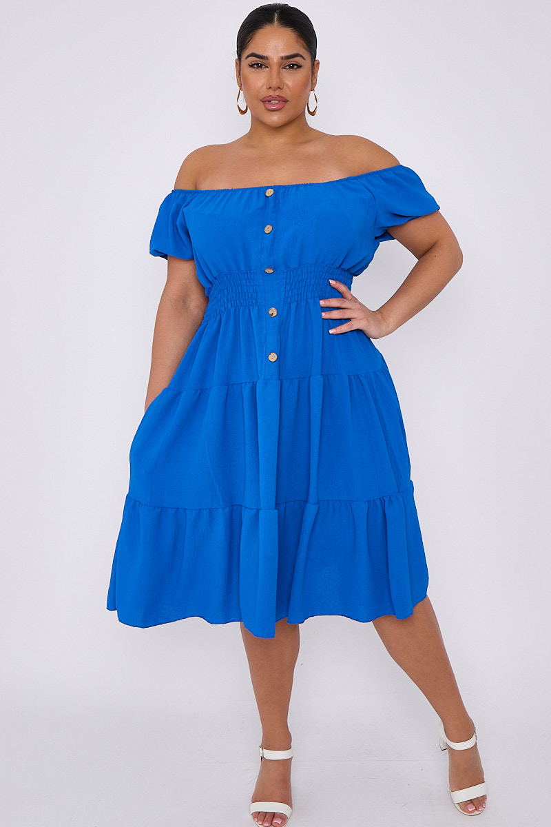 Plus Size Royal Blue Bardot Button Detail Dress With Pockets x 5