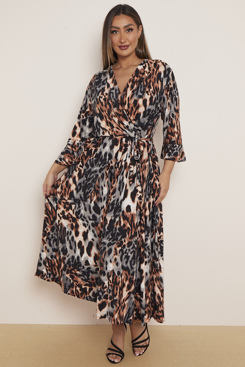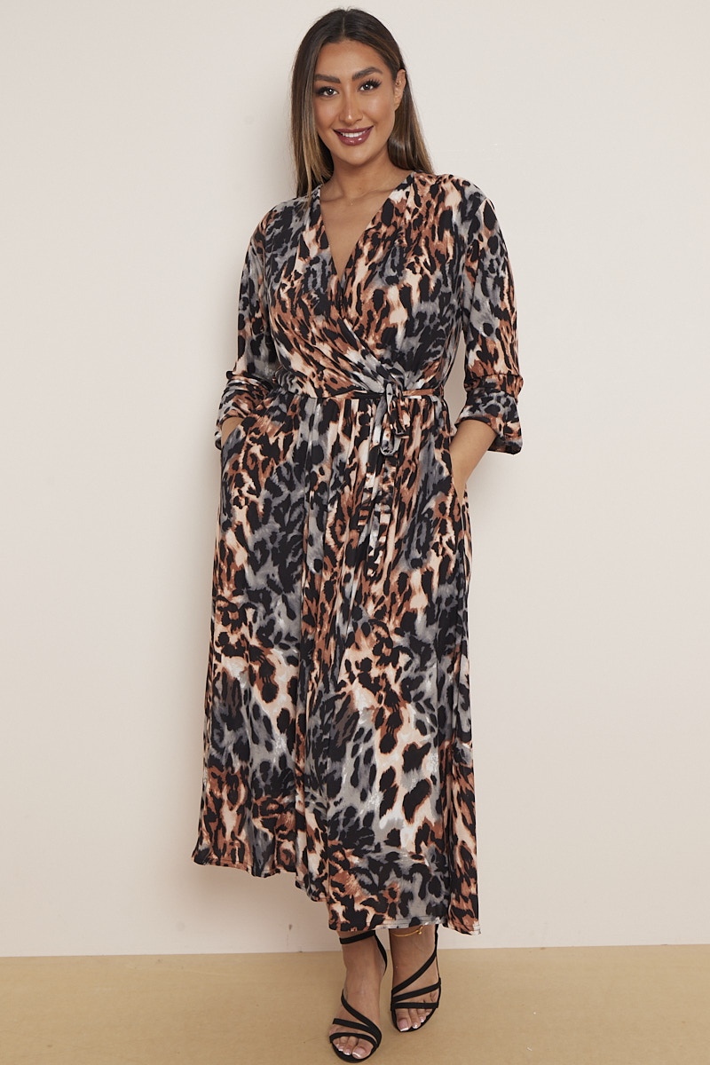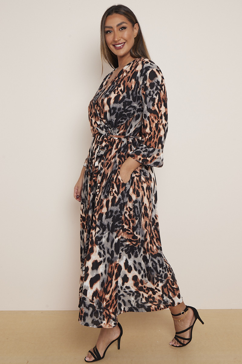Plus Size Rust Animal Print Wrap Dress With Pockets x 5