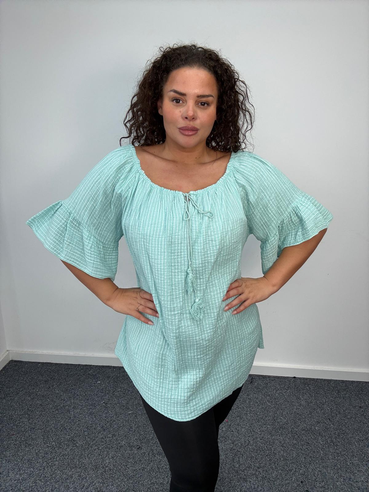 Elevate your plus size collection with this effortlessly stylish striped blouse, designed exclusively for curve customers. Featuring a flattering relaxed fit, soft textured fabric and statement flared sleeves, this top offers both comfort and on-trend appeal. The tassel tie neckline adds a subtle boho touch, making it perfect for casual daywear, holiday edits or easy weekend styling. The lightweight, breathable fabric ensures all-day comfort, while the vertical stripe detail creates a lengthening silhouette that complements fuller figures. Pair with leggings, jeans or jeggings for a versatile look your customers will love season after season. An essential wholesale addition for retailers catering to modern curve fashion.