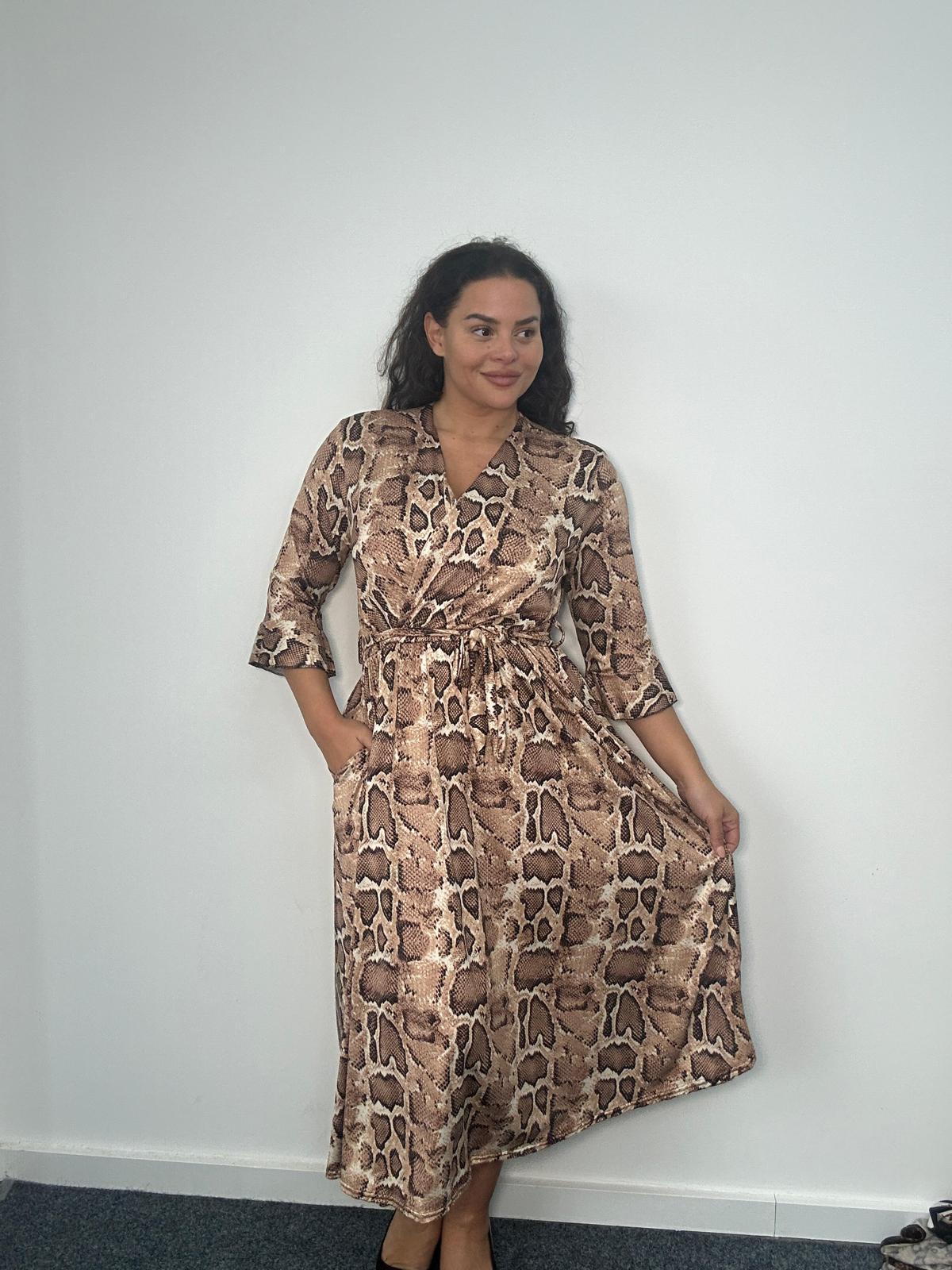 Plus Size Snake Print Wrap Midi Dress with Pockets x 2, 3 & 5 Pack Options