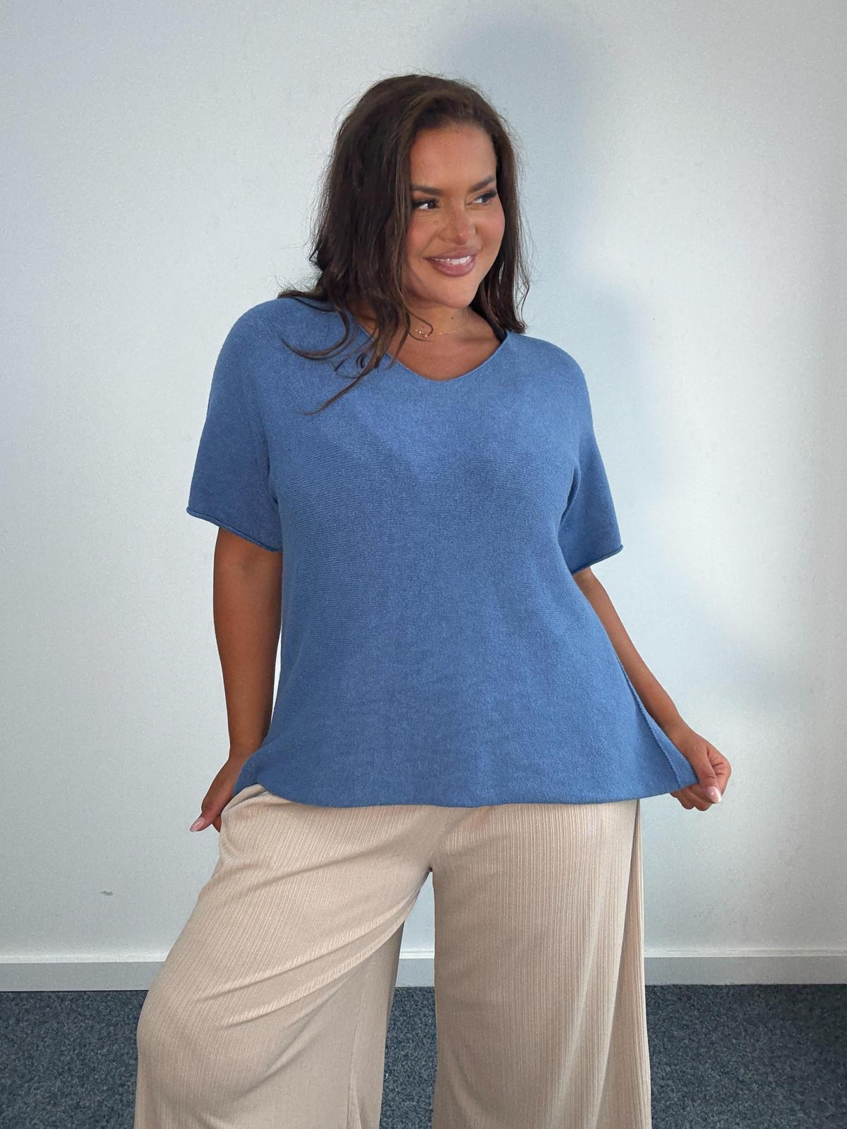 Plus Size Soft Blue Lightweight V Neck Relaxed Curve T Shirt x 5