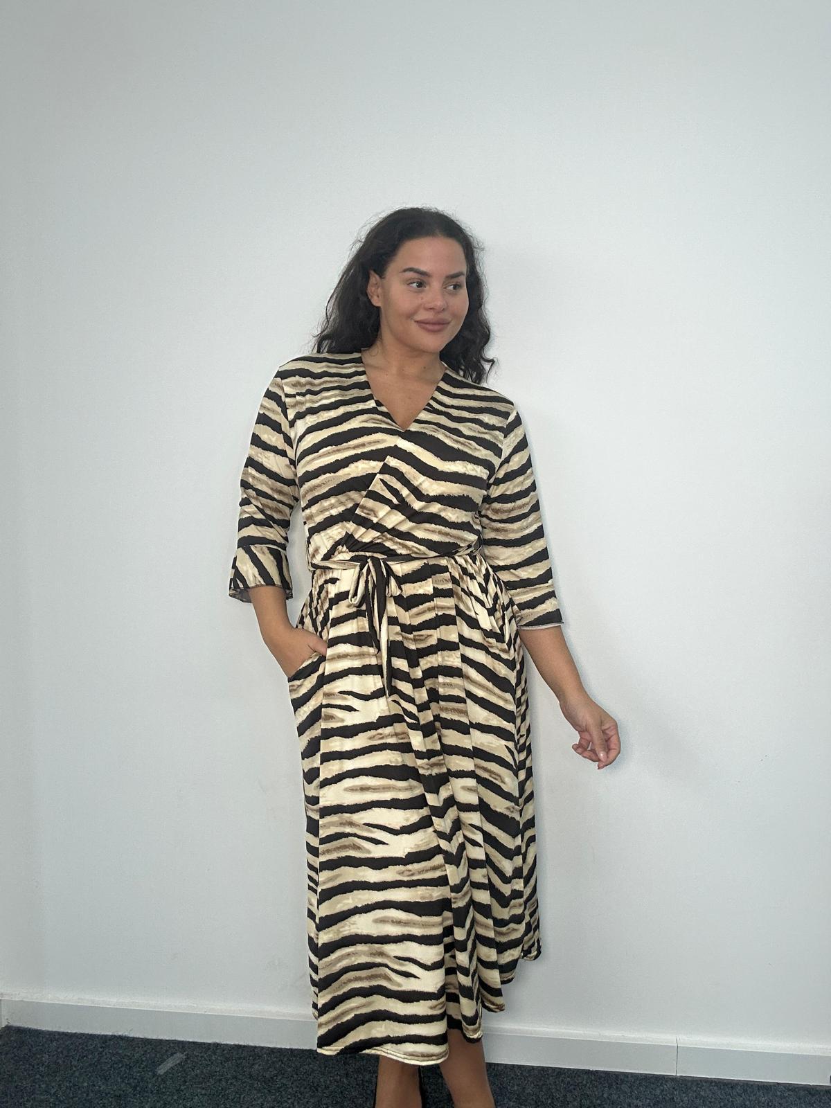 Plus Size Striped Animal Print Wrap Midi Dress with Pockets x 2, 3 & 5 Pack Options