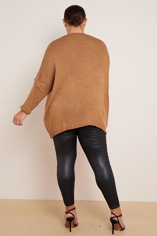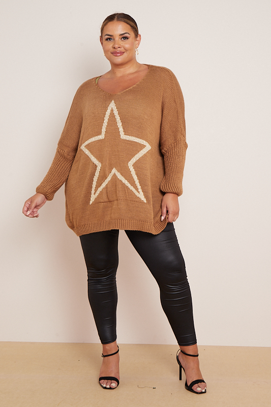 Plus Size Tan Star Print Long Sleeve V Neck Jumpers x 5