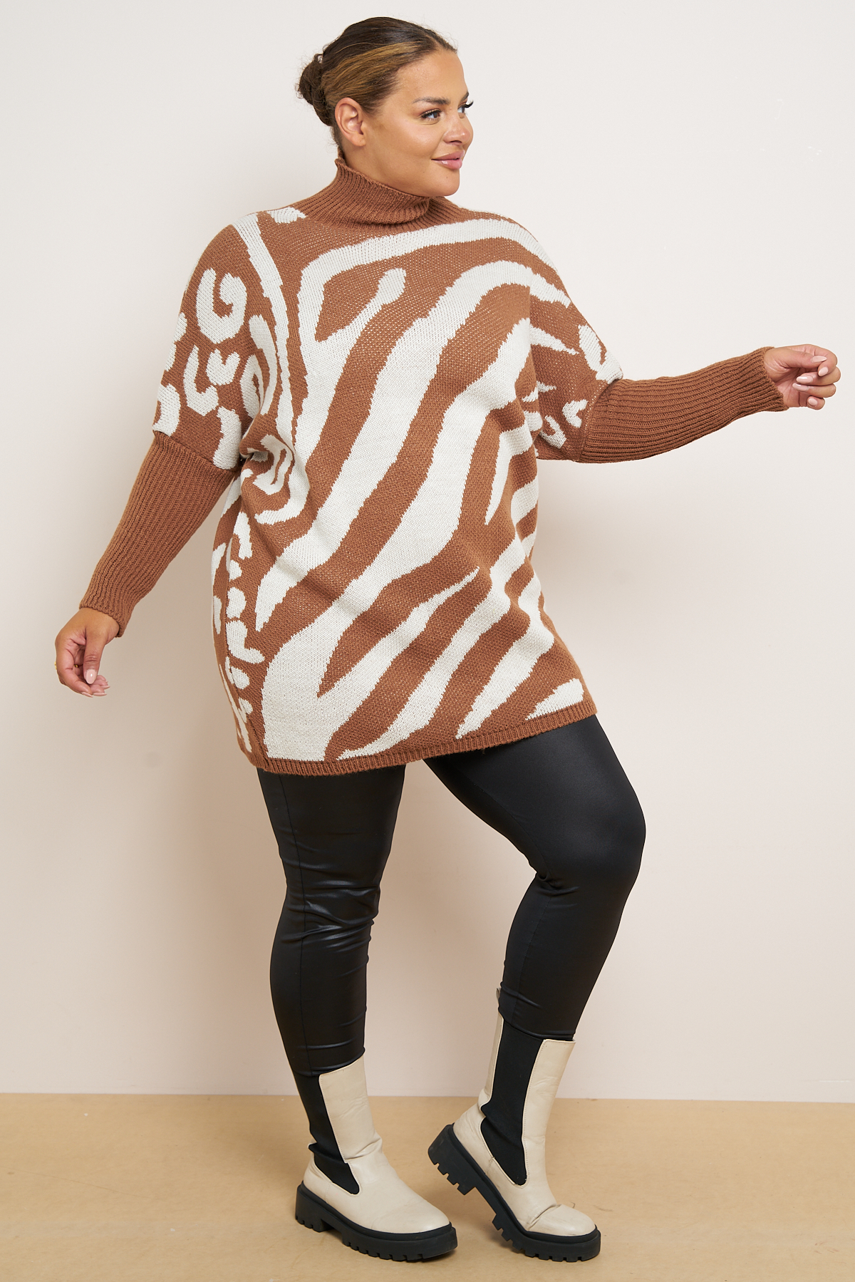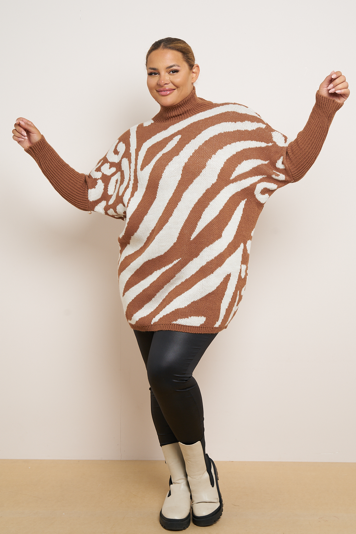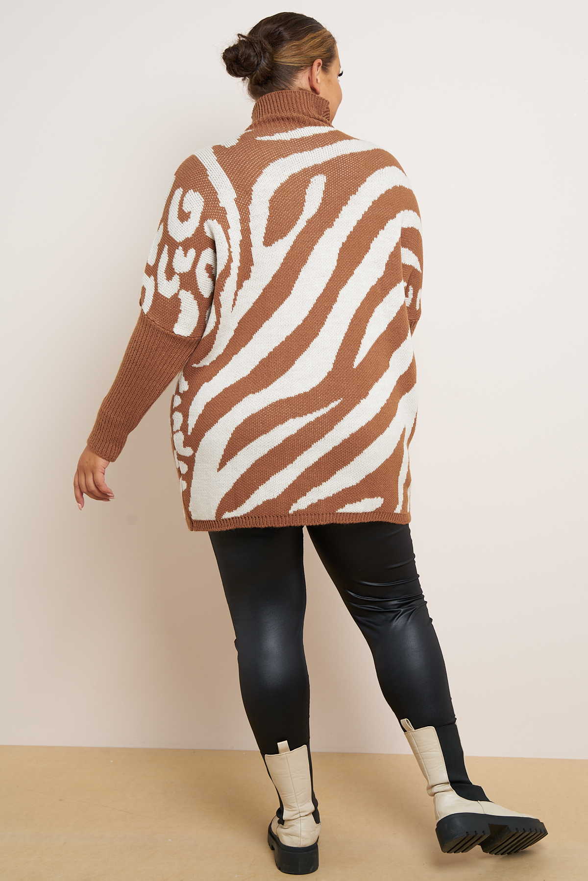 Plus Size Tan Zebra Print High Neck Jumper x 5