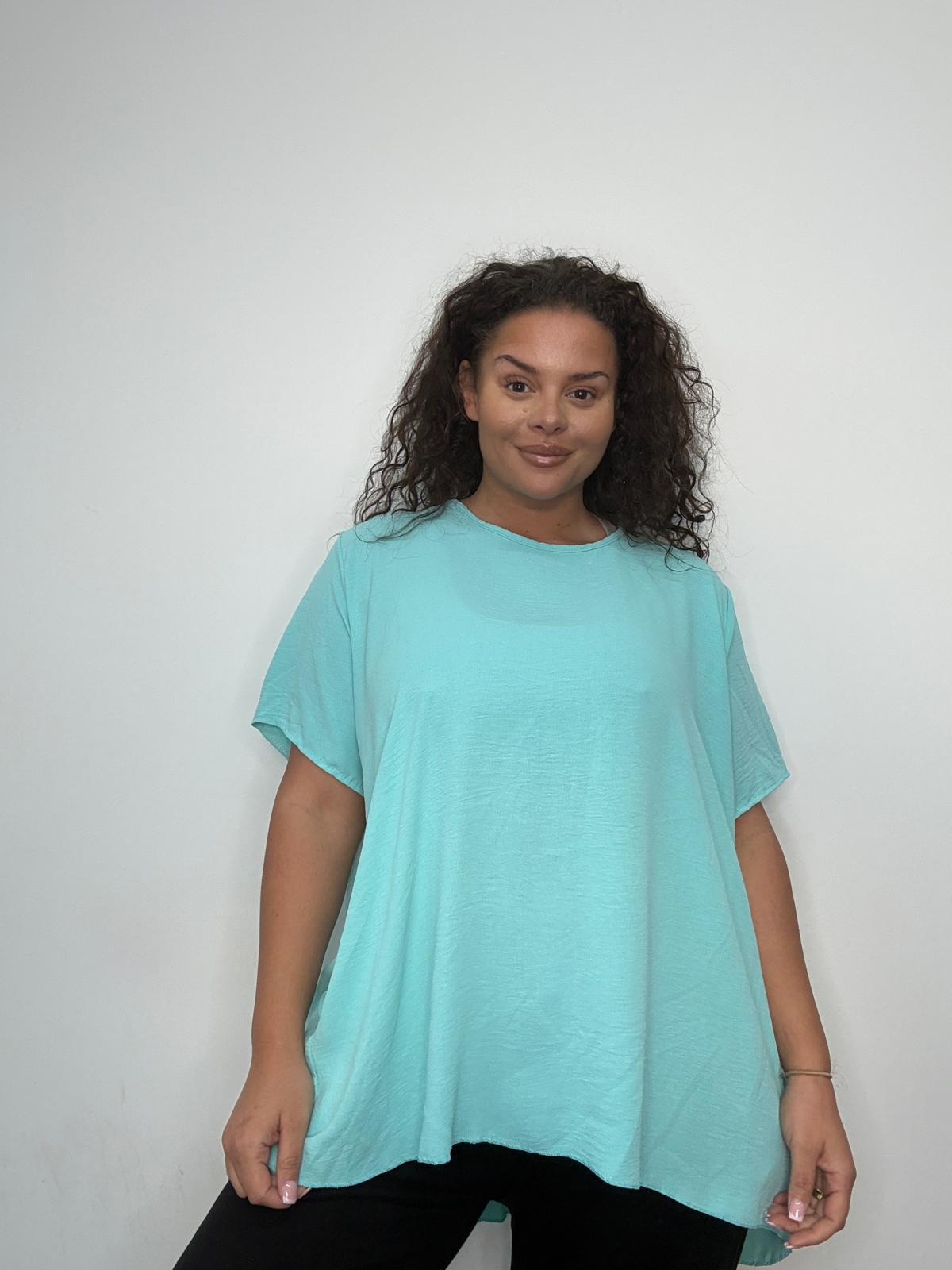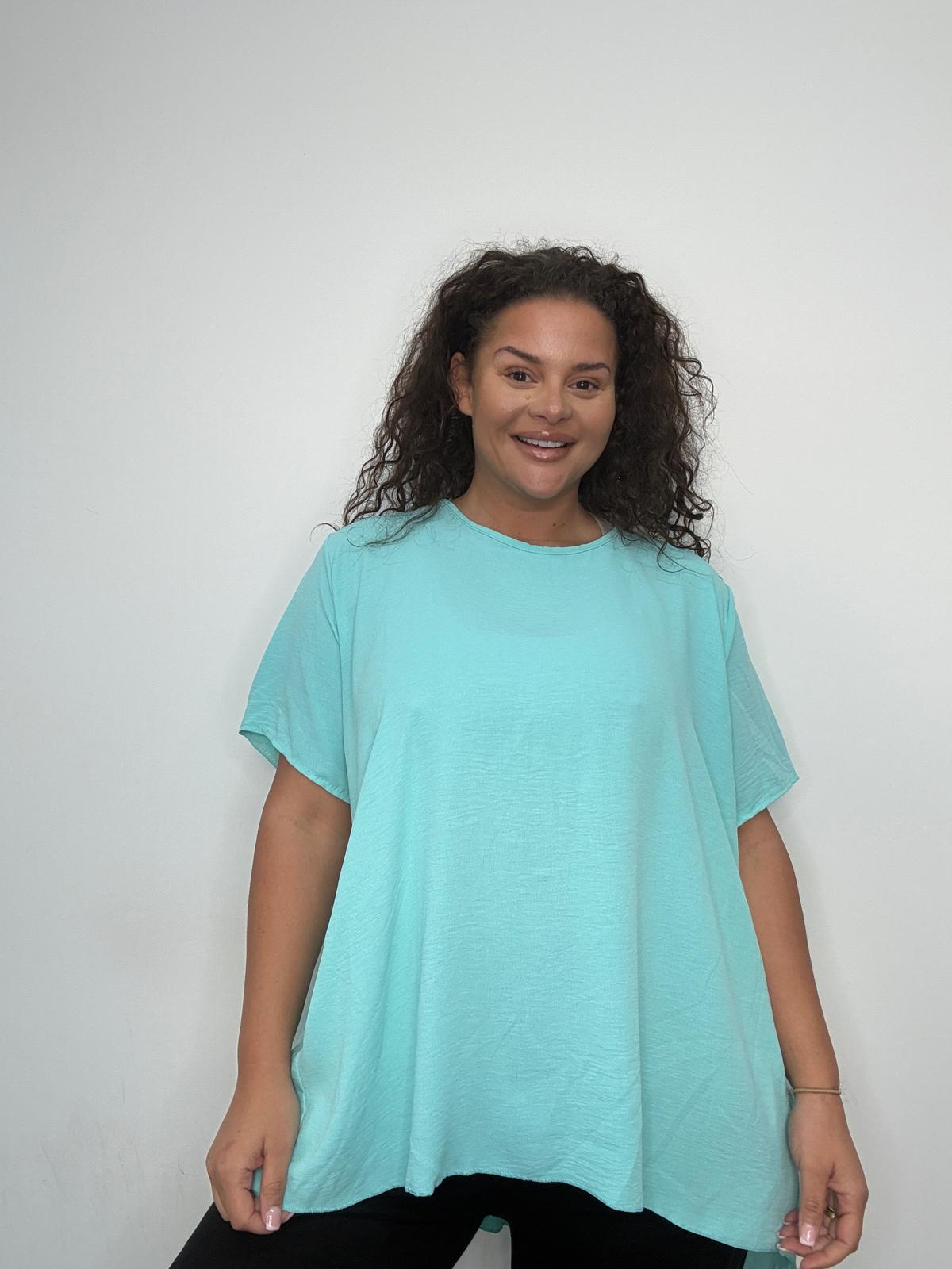 Our Plus Size Pleated Back Oversized T-Shirt Top is a must-have staple for effortless everyday dressing. Designed specifically for curve customers, this relaxed-fit top combines comfort with contemporary style. Crafted from a soft, lightweight woven fabric, it features a classic round neckline and short sleeves with a beautifully flowing pleated back panel that adds shape and movement without clinging. The longer length offers flattering coverage, making it ideal to pair with leggings, jeggings or slim-fit trousers. A versatile piece that works across seasons, this top is perfect for casual collections, travel wear or relaxed weekend looks. Easy to dress up or down, it’s a proven style that appeals to a wide range of plus size customers.