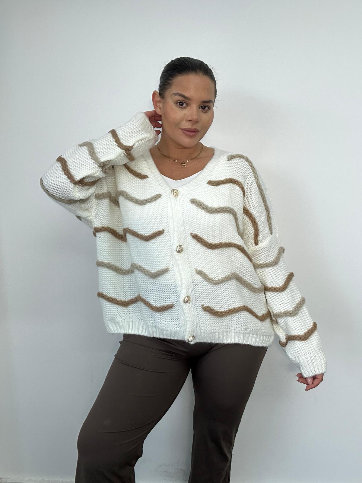 Plus Size White Chunky Knit Striped Cardigan with Button Front x 2, 3 & 5 Pack Options