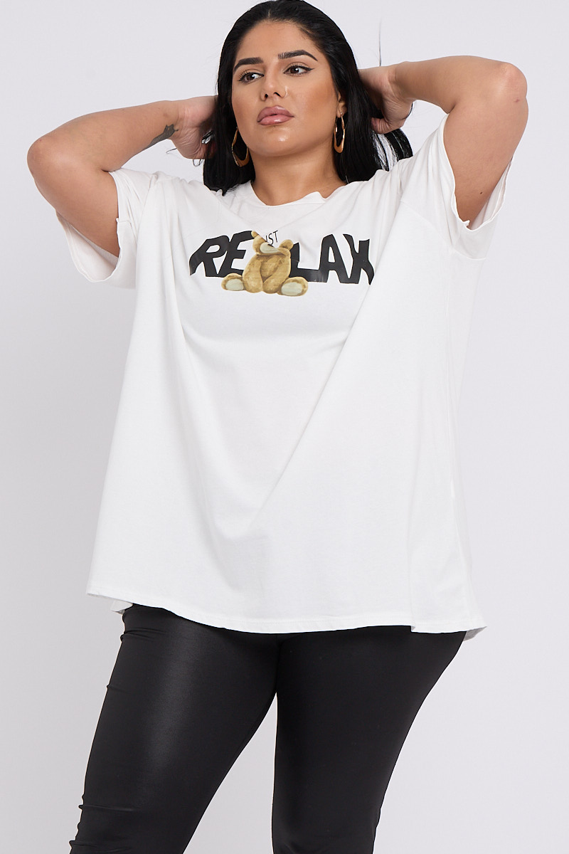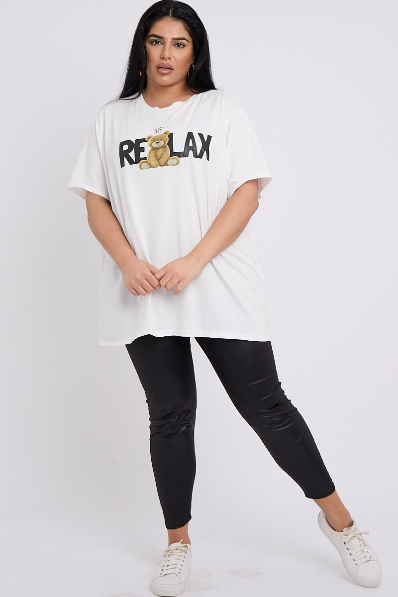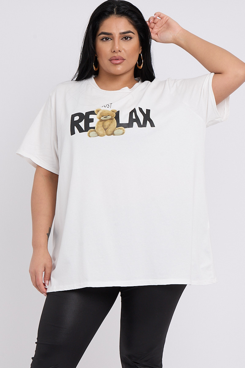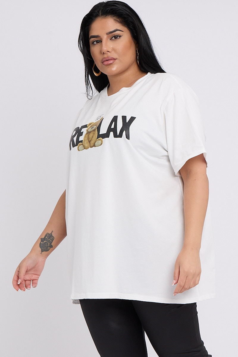 Plus Size White Just Relax Slogan Print Round Neck T Shirt x 5