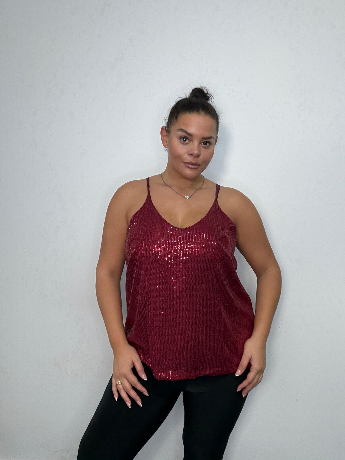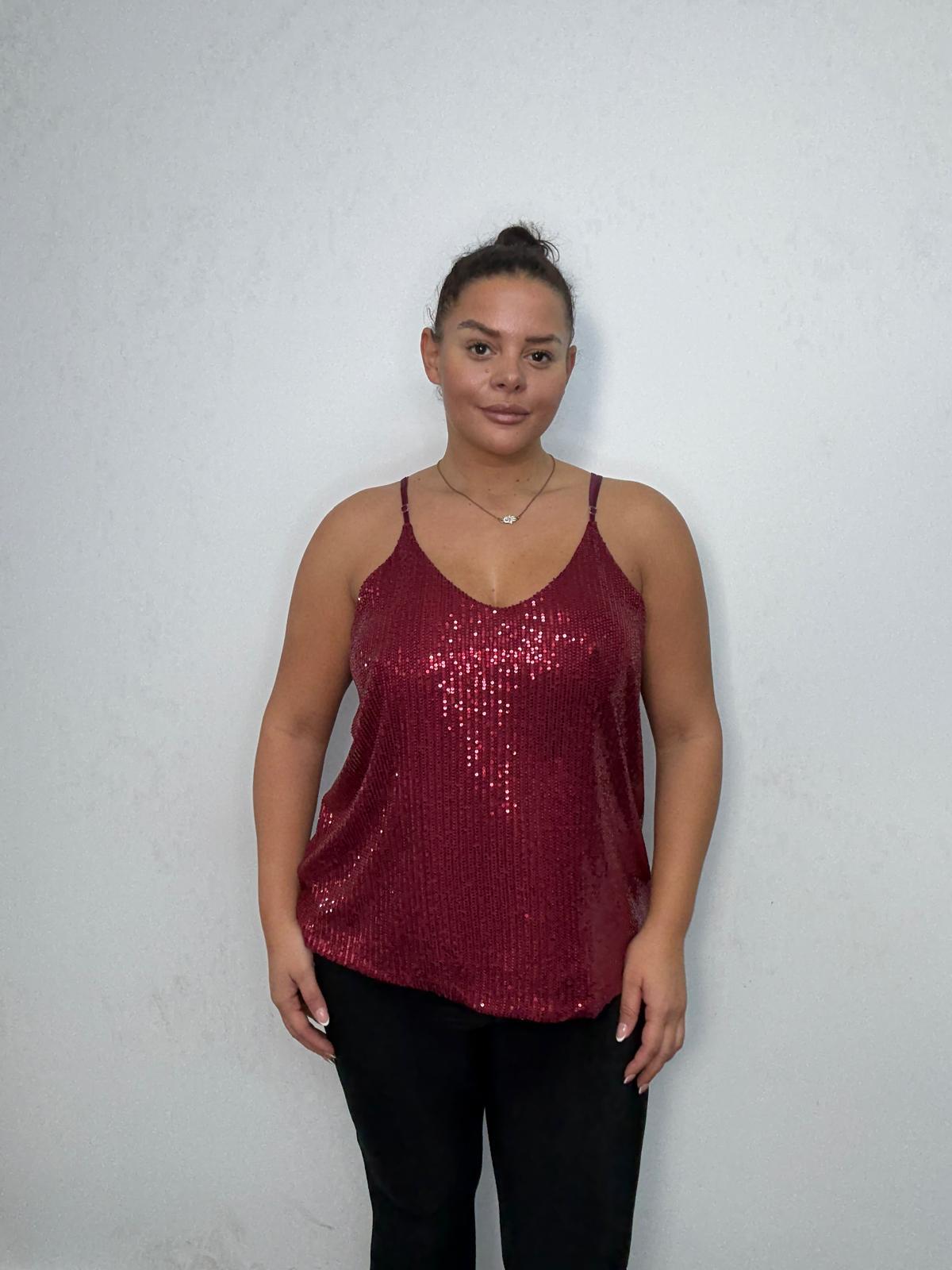 Plus Size Wine Sequin Cami Top x 2, 3 & 5 Pack Options