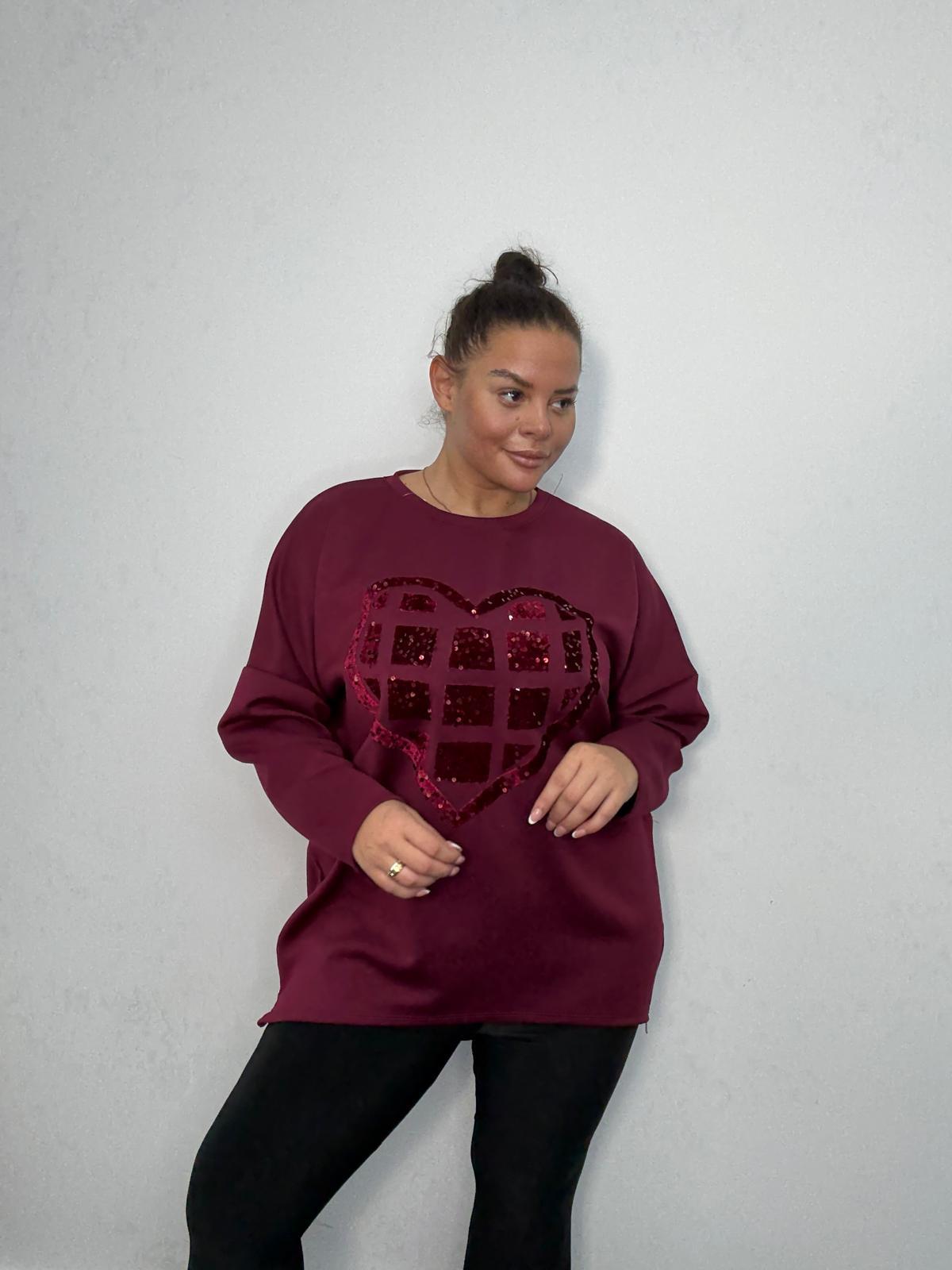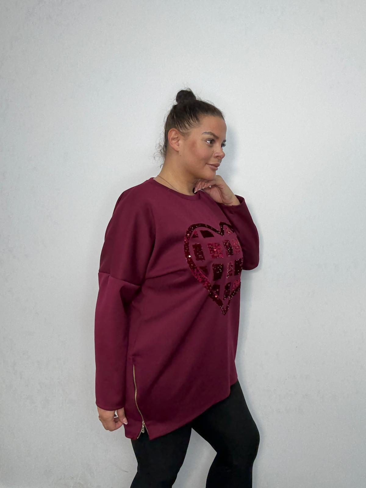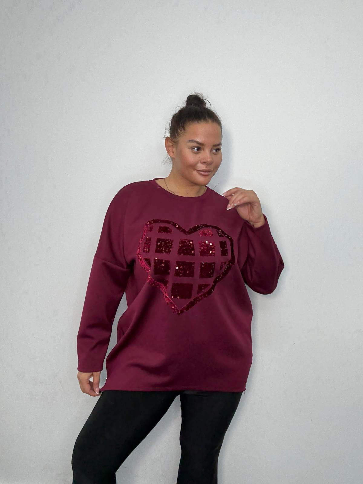Refresh your plus-size casualwear offering with this stylish sequin heart longline sweatshirt. Made in a soft, comfortable fabric, this relaxed-fit top features a bold sequin heart motif on the front, adding a touch of sparkle to everyday dressing. The longline silhouette provides great coverage, while gold side-zip detailing adds a modern finish and optional styling flexibility. Ideal for loungewear, casual day looks, and festive-season collections, this sweatshirt is an easy bestseller for retailers looking for comfort combined with eye-catching design.