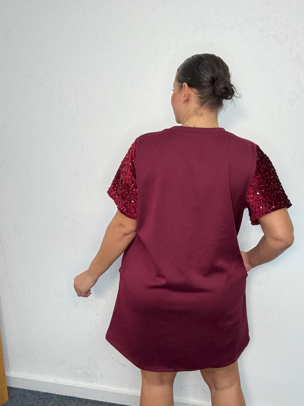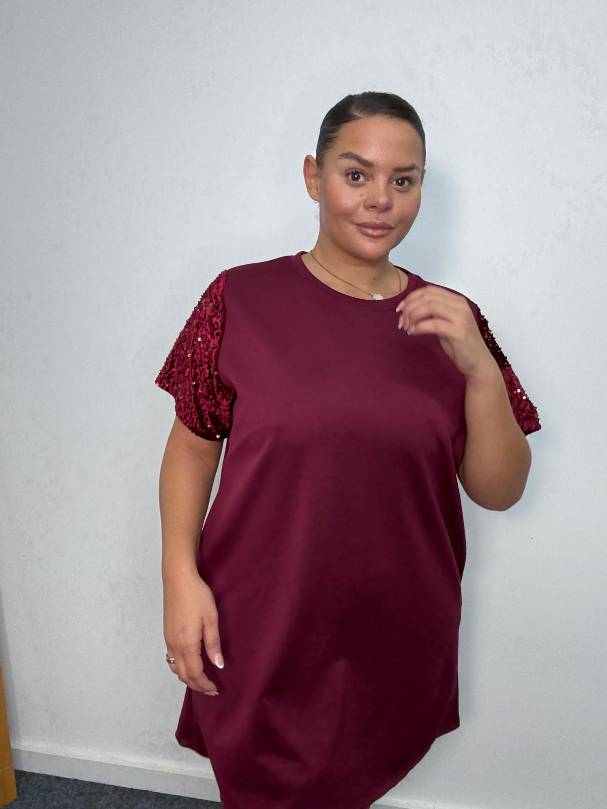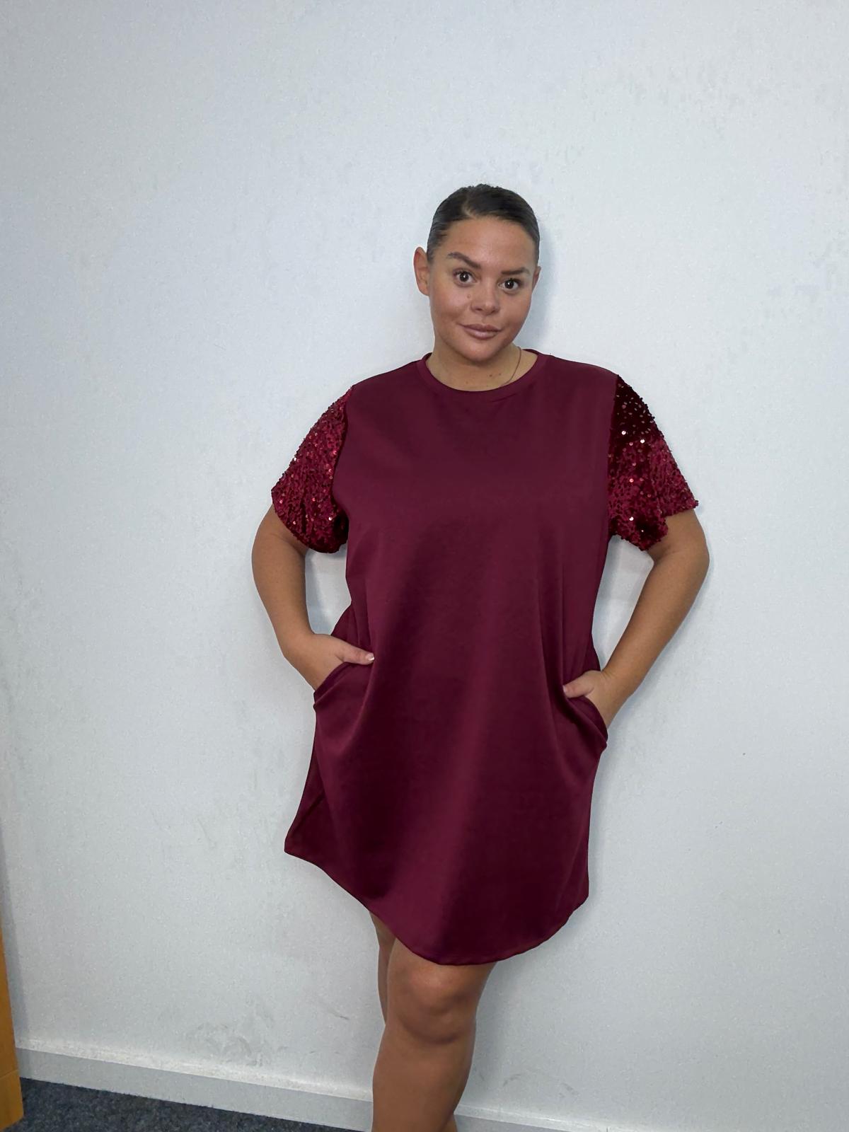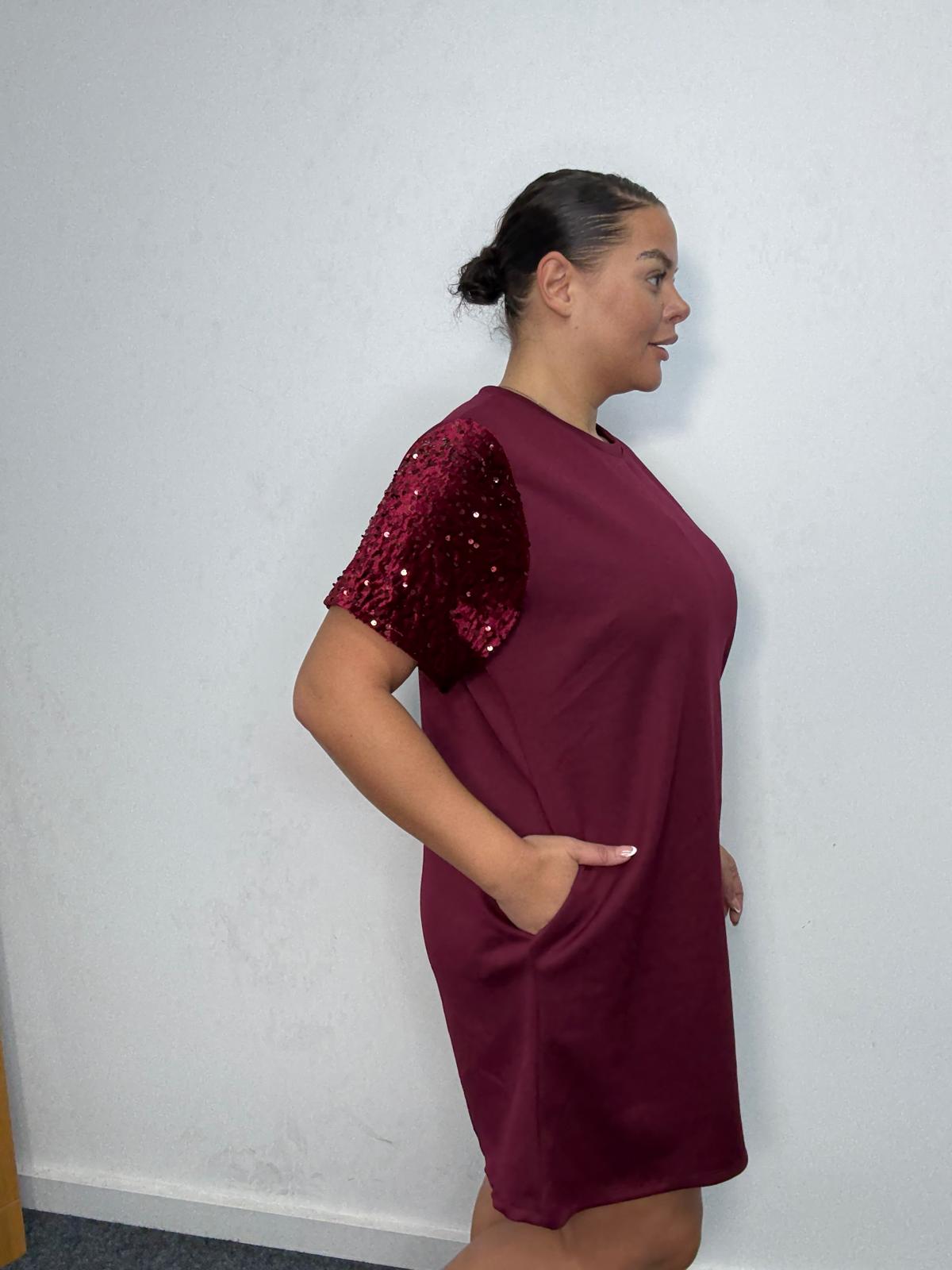 Bring sparkle to everyday styling with this plus-size sequin sleeve t-shirt dress. Designed in a flattering relaxed silhouette, this piece blends comfort with subtle glamour. The shimmering sequin short sleeves elevate the look, making it ideal for casual party edits, festive drops, and day-to-night outfit options. Finished with a round neckline and convenient side pockets, it’s a must-have style that offers retailers effortless versatility and strong seasonal sales potential.