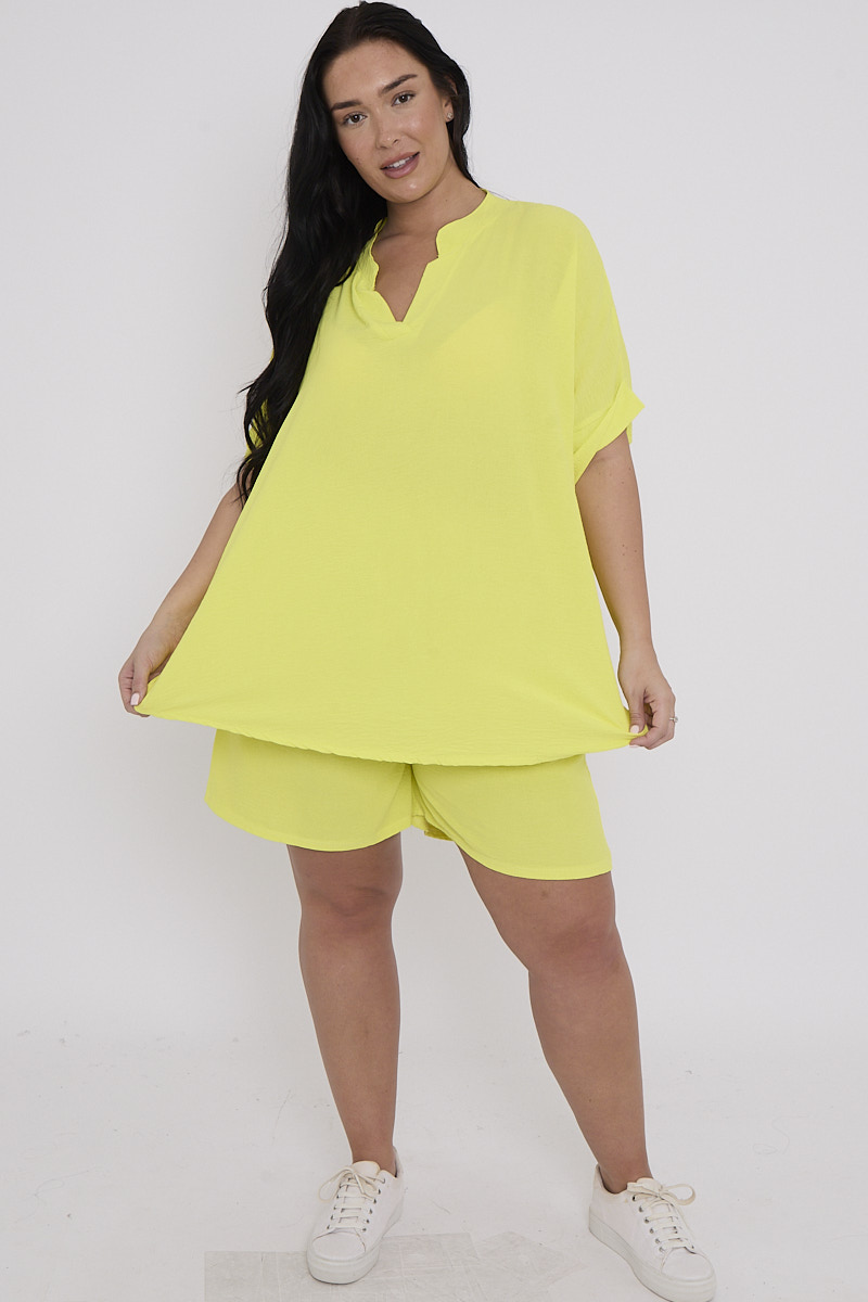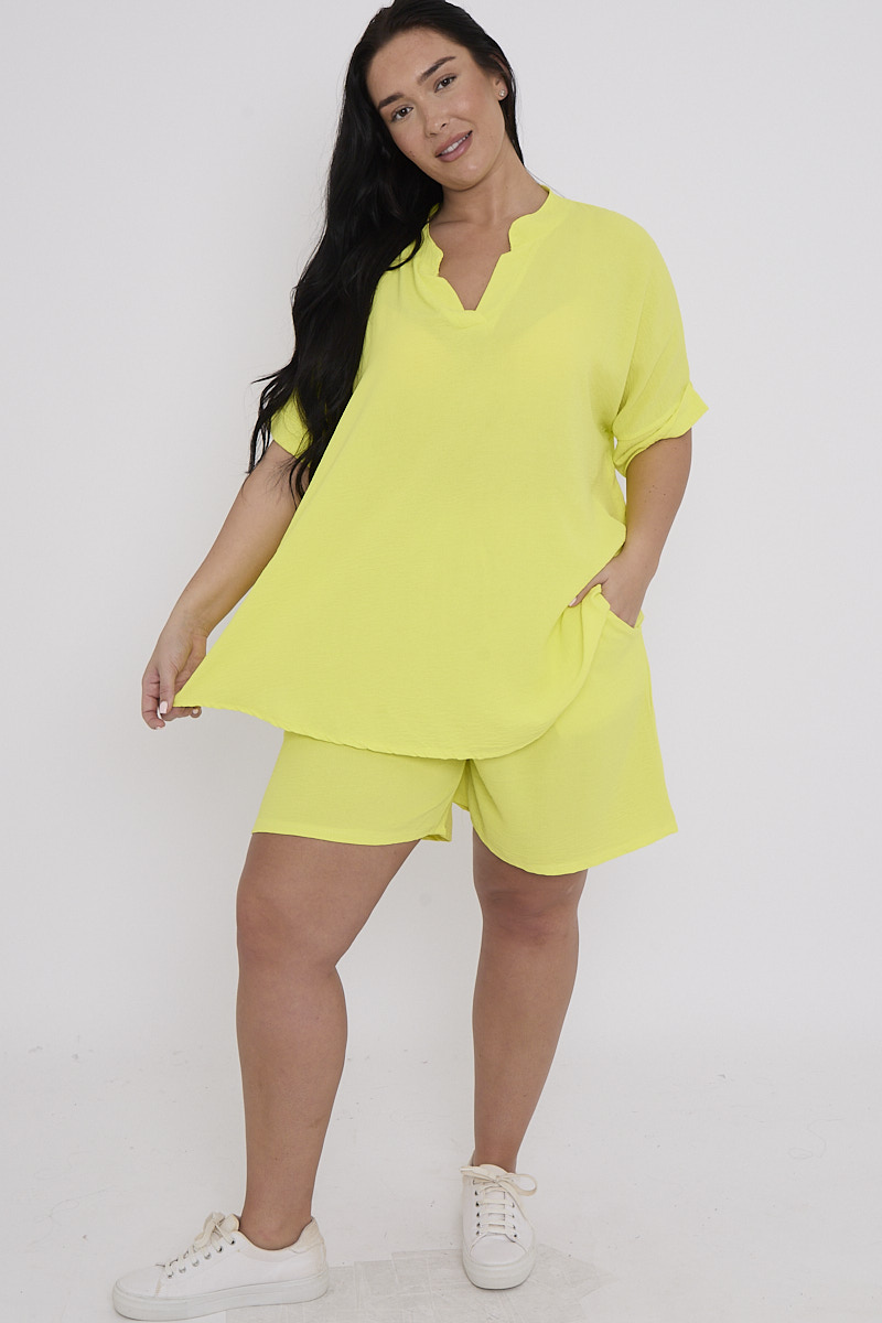 Plus Size Yellow 2 Piece Co Ord Set With Top & Shorts x 5