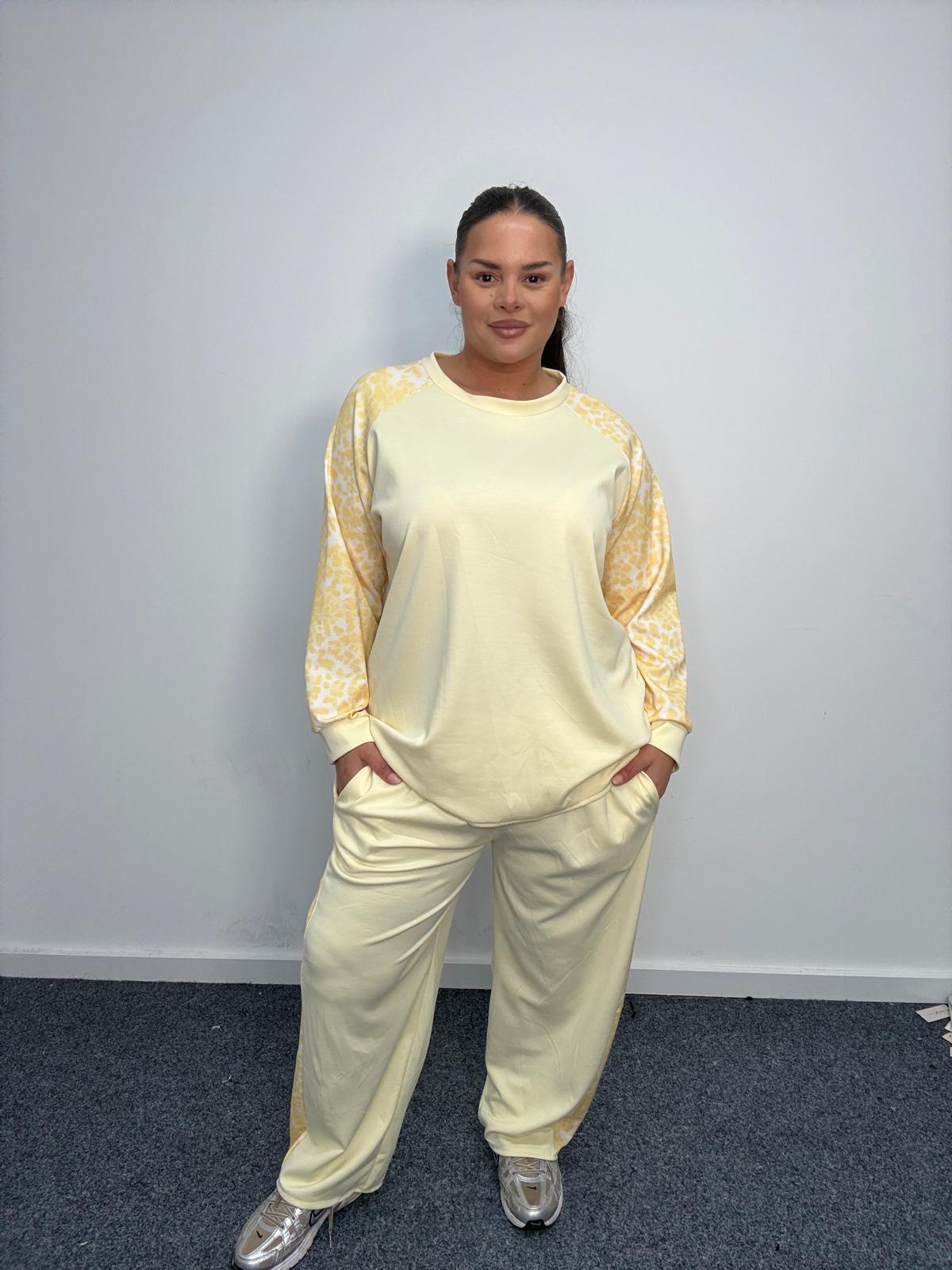 Plus Size Yellow Leopard Print Sleeve Loungewear Co-Ord Set x 2, 3 & 5 Pack Options