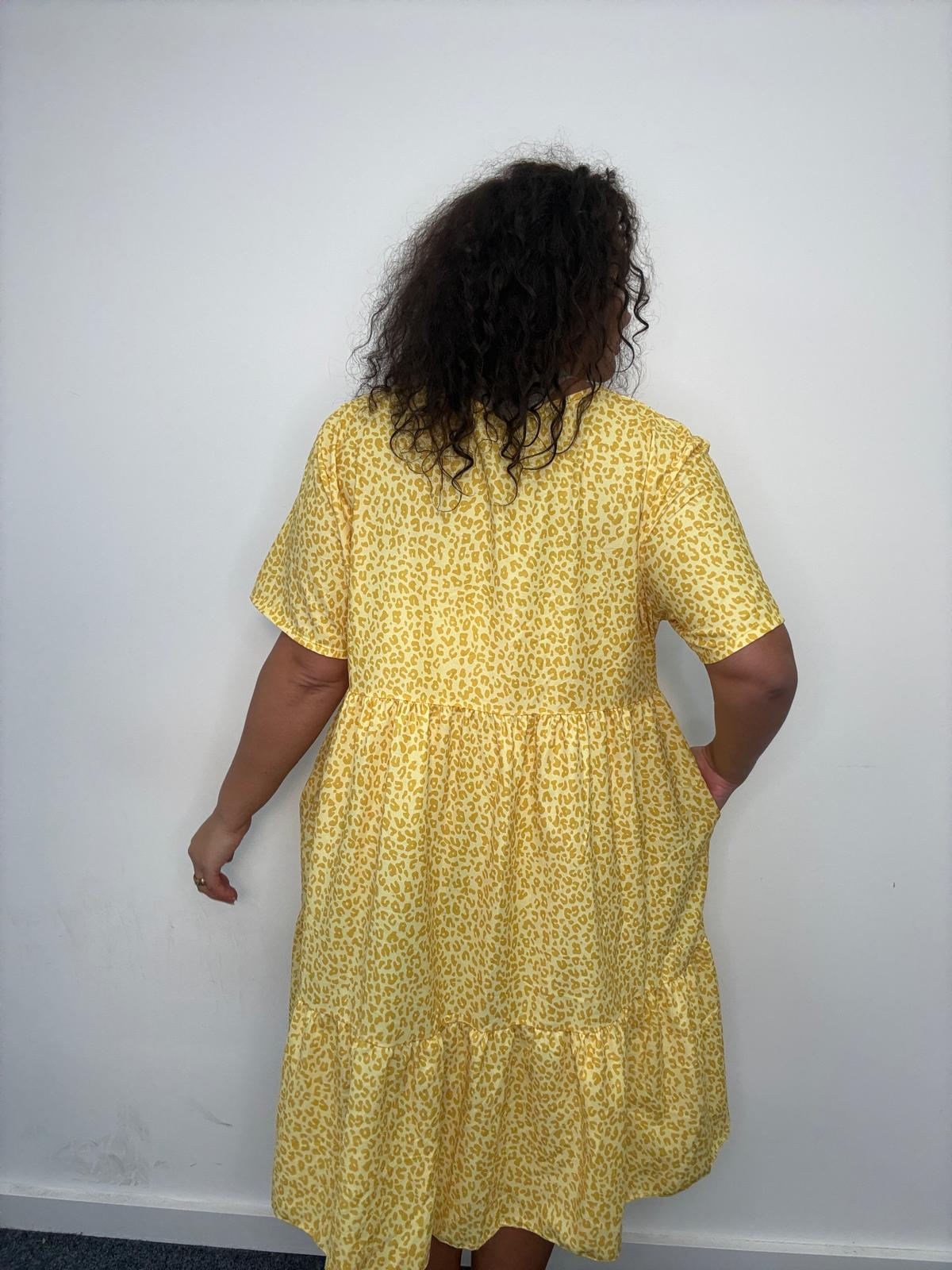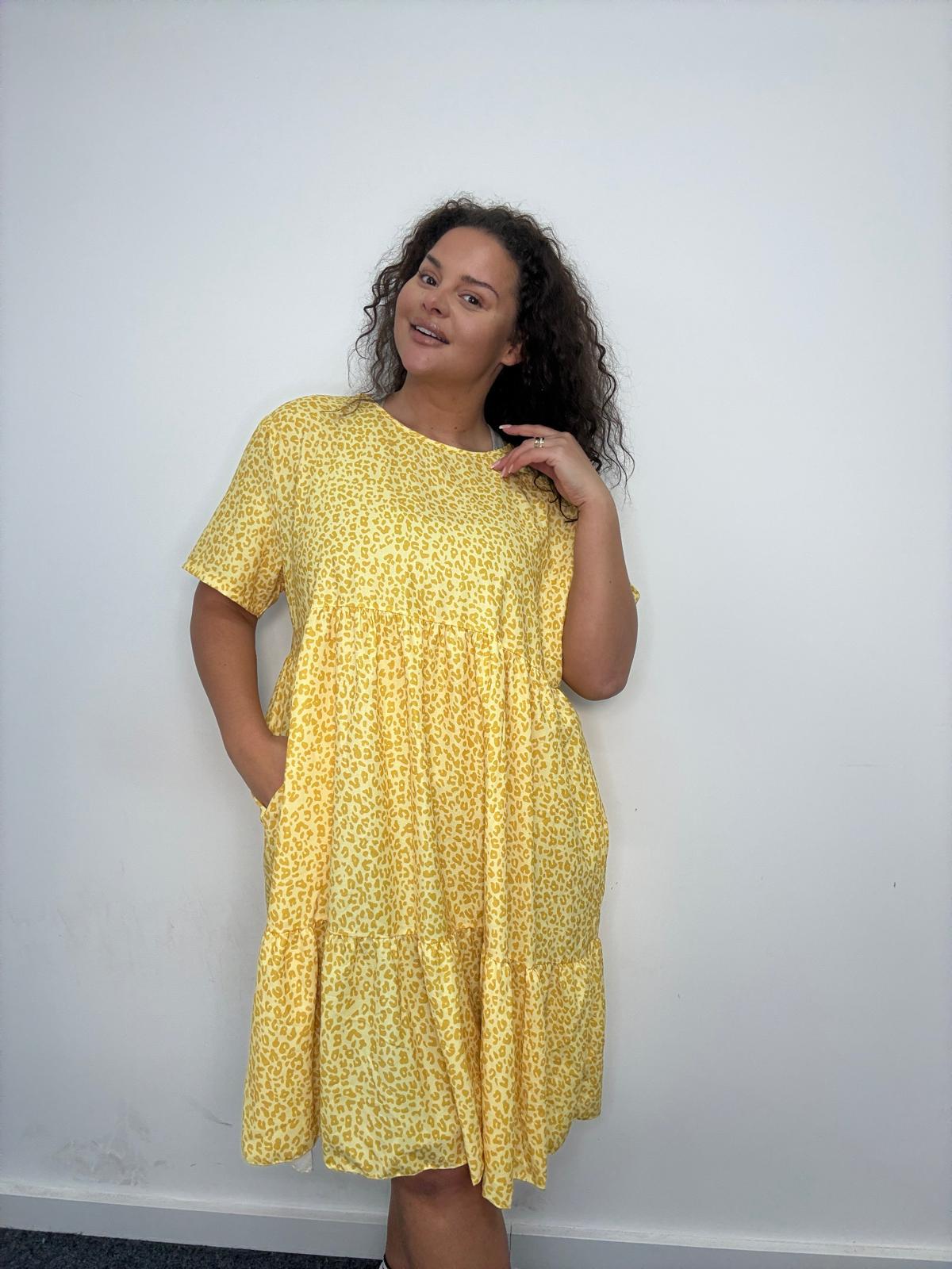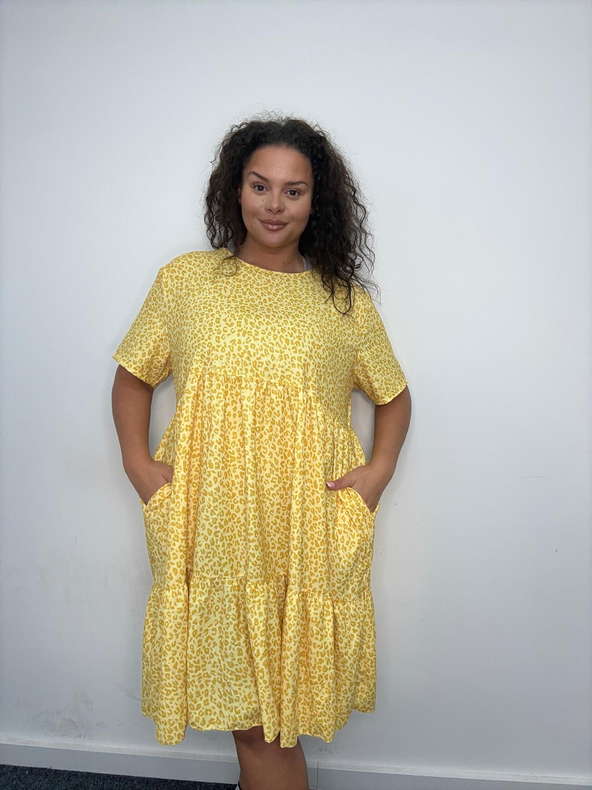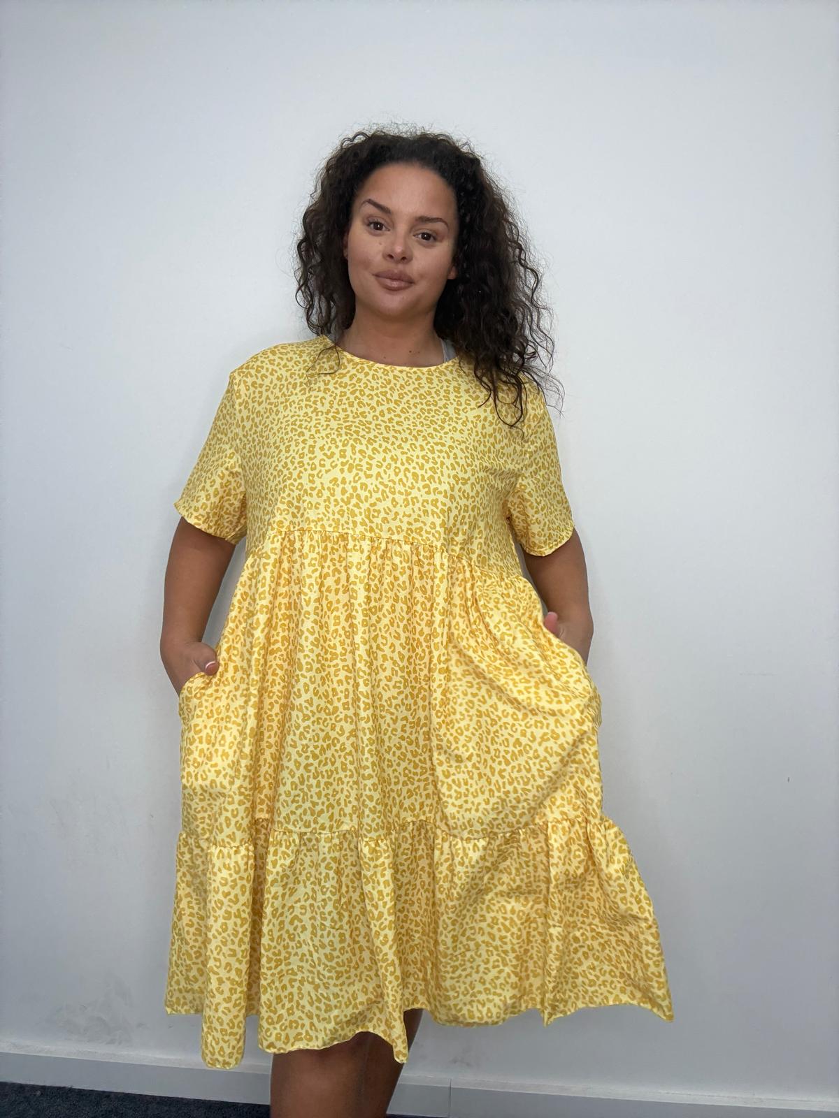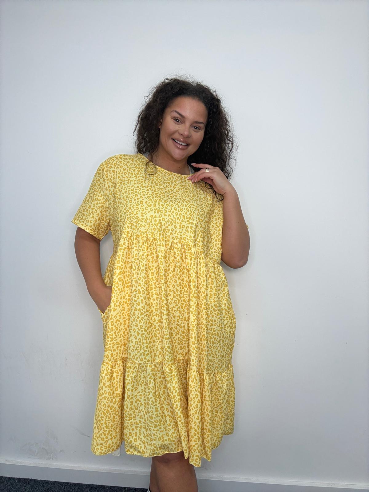 This plus size smock dress is a strong everyday style designed to combine comfort, movement, and trend-led appeal. Featuring an all-over leopard print, it’s cut in a relaxed tiered silhouette that flatters curve figures while allowing ease of wear. The soft, lightweight fabric drapes effortlessly, while short sleeves ands a classic round neckline keep the look wearable and versatile. Finished with practical side pockets, this style is ideal for casual dressing, weekend wear, or easy throw-on outfits that plus size customers love. A reliable, easy-selling piece for UK wholesale buyers looking for fashionable yet comfortable plus size dresses with broad commercial appeal.