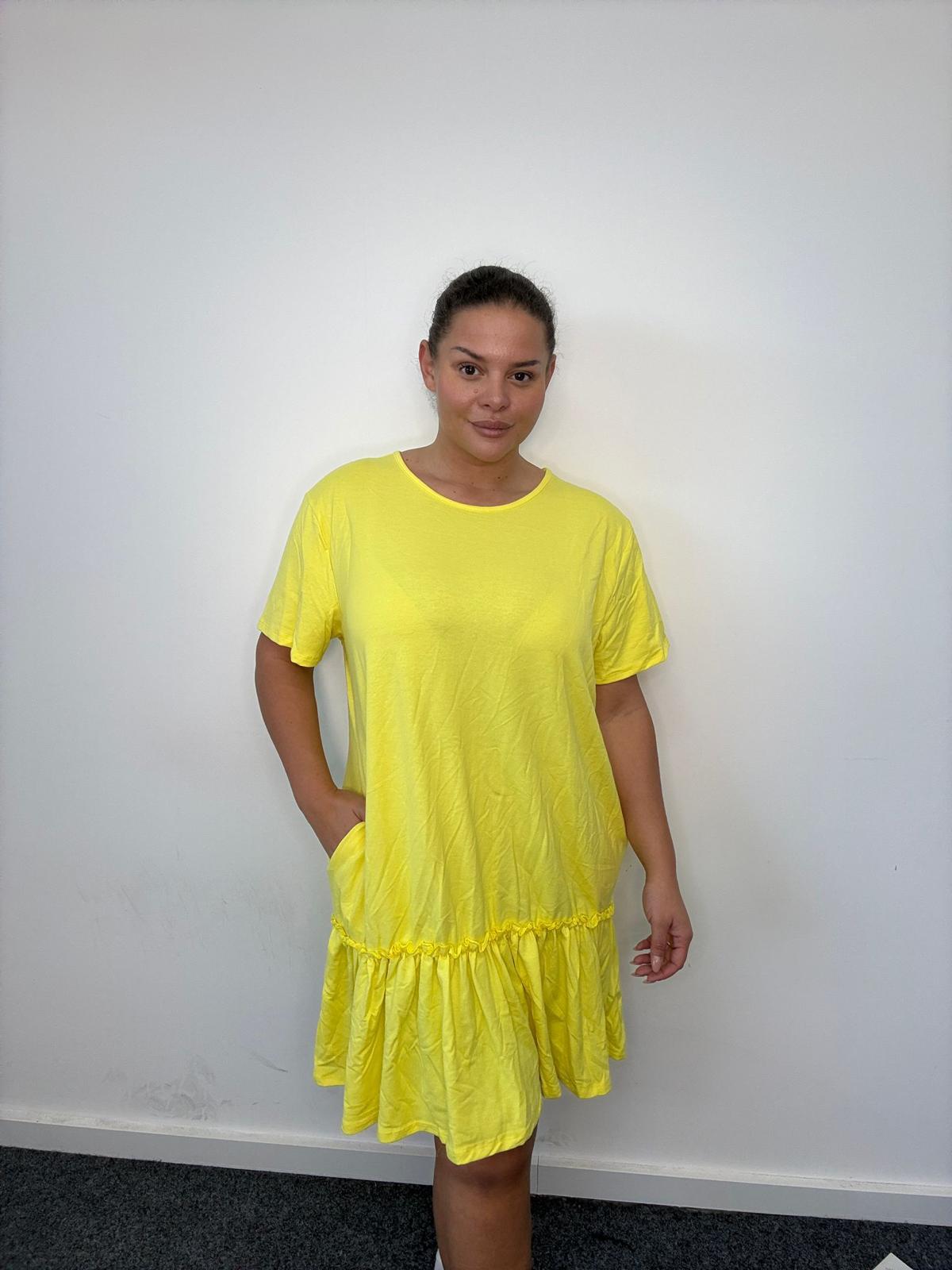 Plus Size Yellow Soft Ruffle Hem T-Shirt Dress with Pockets x 2, 3 & 5 Pack Options